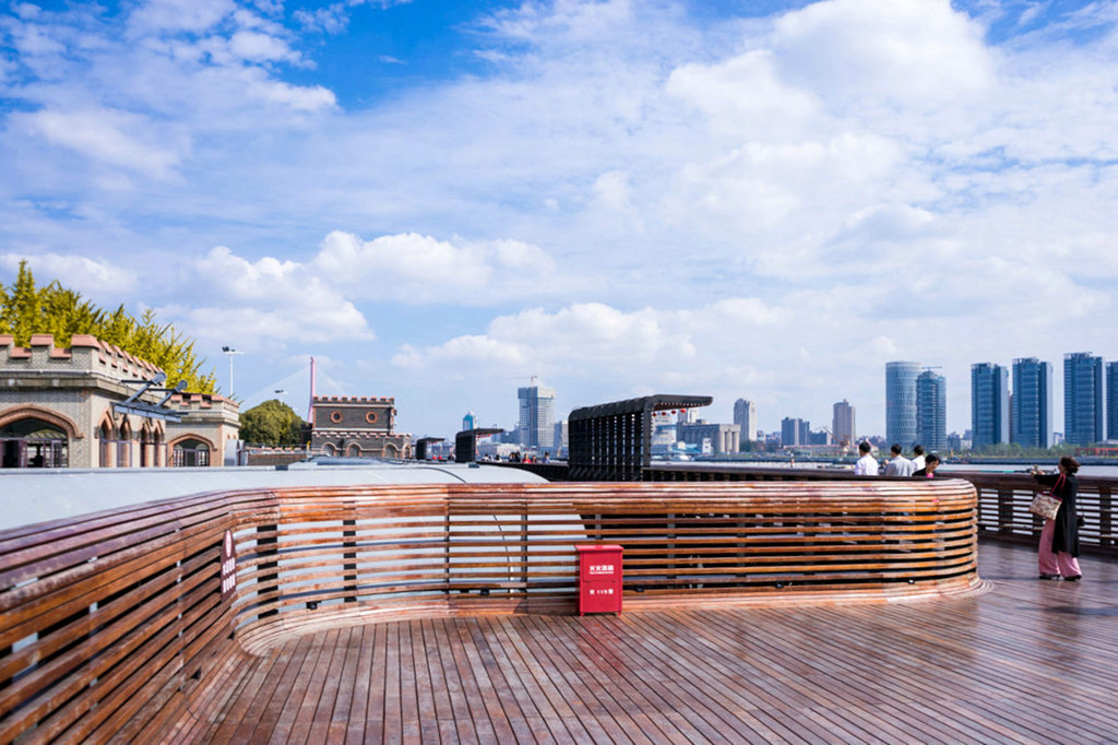 在栈桥上行进的过程仿佛是在甲夹板上穿行,能同时感受黄 浦江 景致与水厂历史风貌。