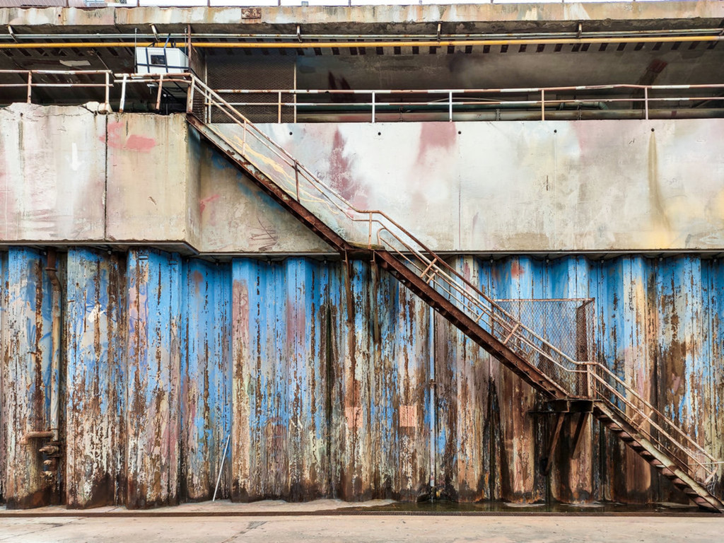 上海船厂滨江绿地如今这座200多米长的船坞展现在人们的眼前,充满工业气息的斑驳锈迹在落日余晖中也不减分毫张力,令人十分震撼。