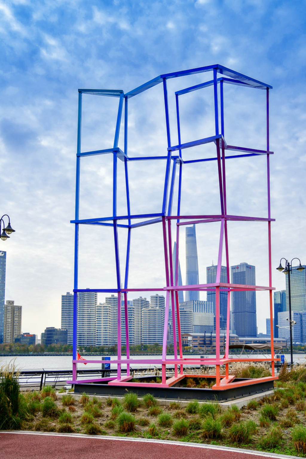 作品的中间贯穿着“时间之箭”,以黄 浦江 蜿耀的形态为蓝本,象征着一段抽象的时间轴,连接和叙述着过去、此刻以及未来。作者:向阳
