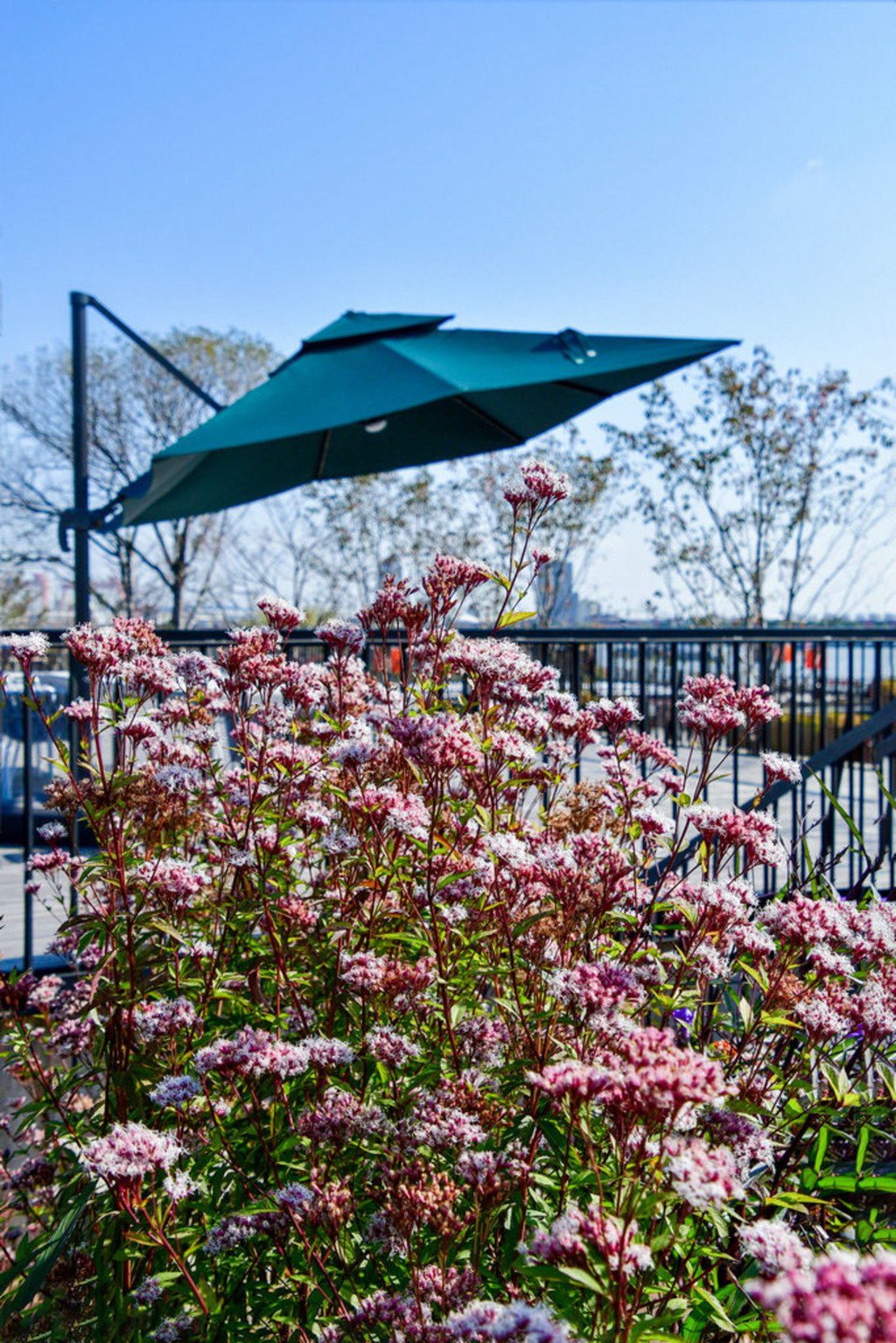 这里不仅是摄影爱好者不容错过的打卡拍摄最佳制高点。而且建筑中庭的圆形构图及旋转的长梯造型奇巧、视角独特,吸引着来往游客的眼球。 杨浦 滨江《绿之丘》已成为滨江网红地标。