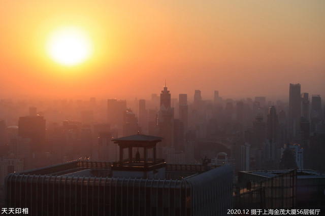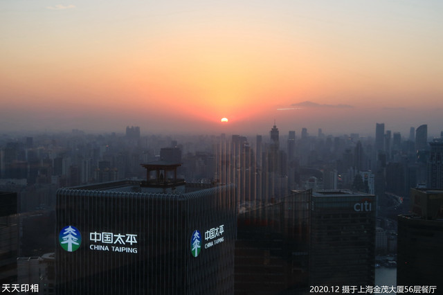年末的上海大地冰冻,天空却格外明朗,在陆家嘴金茂大厦56层餐厅可以观赏今年最后一轮落日,望着红日我们即将告别2020,迎接2021。祝愿中国平安!