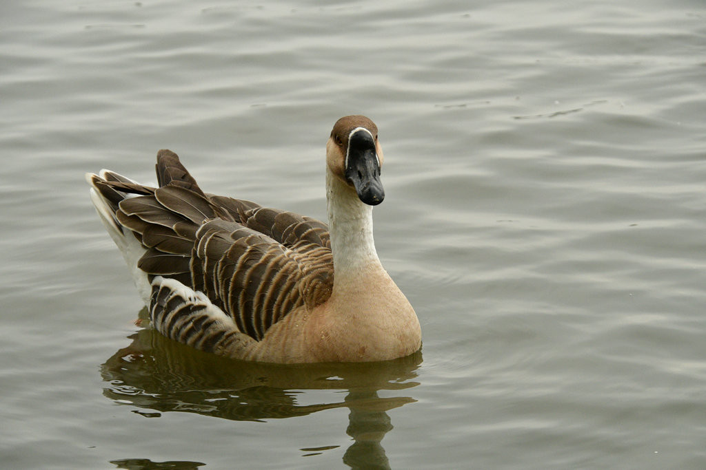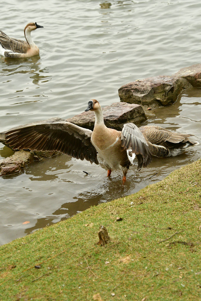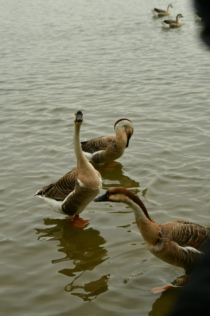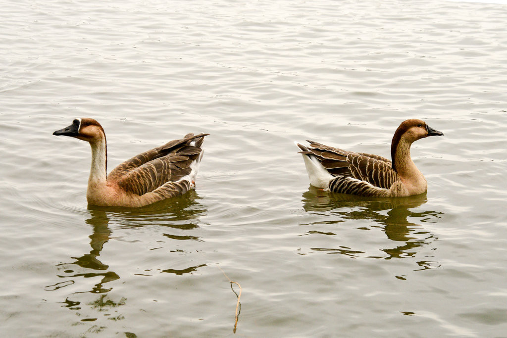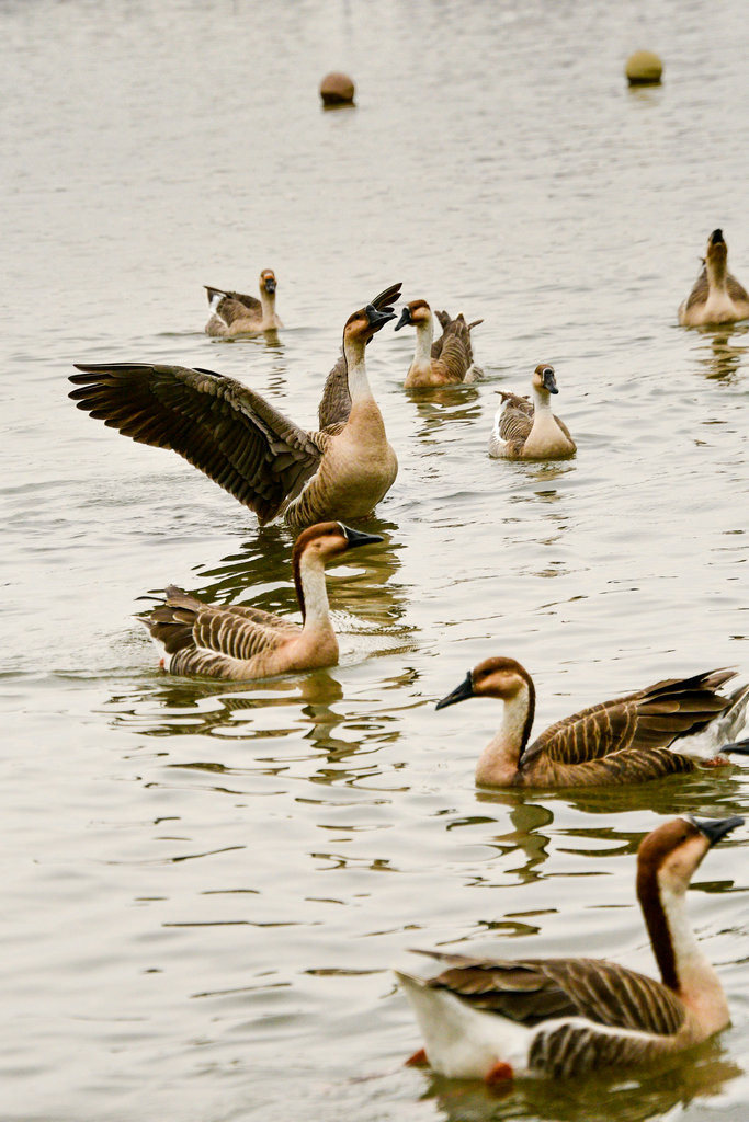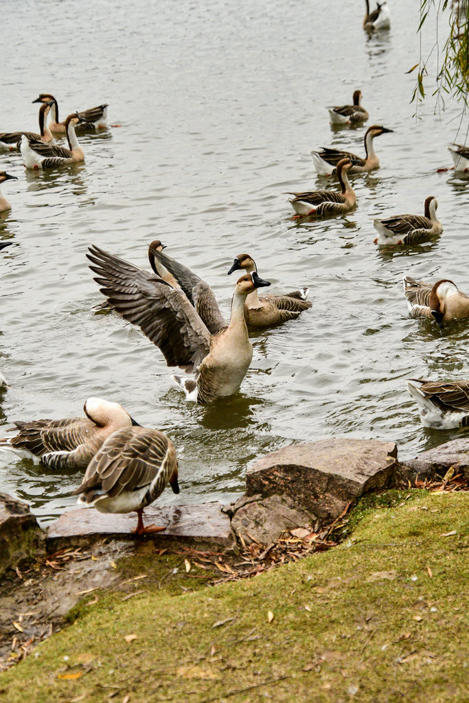 原本稍显平静的湖面,因为有了大雁悠游而灵动起来。