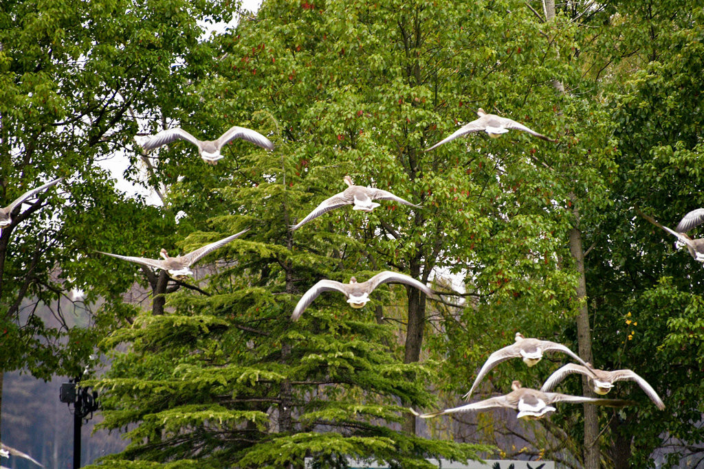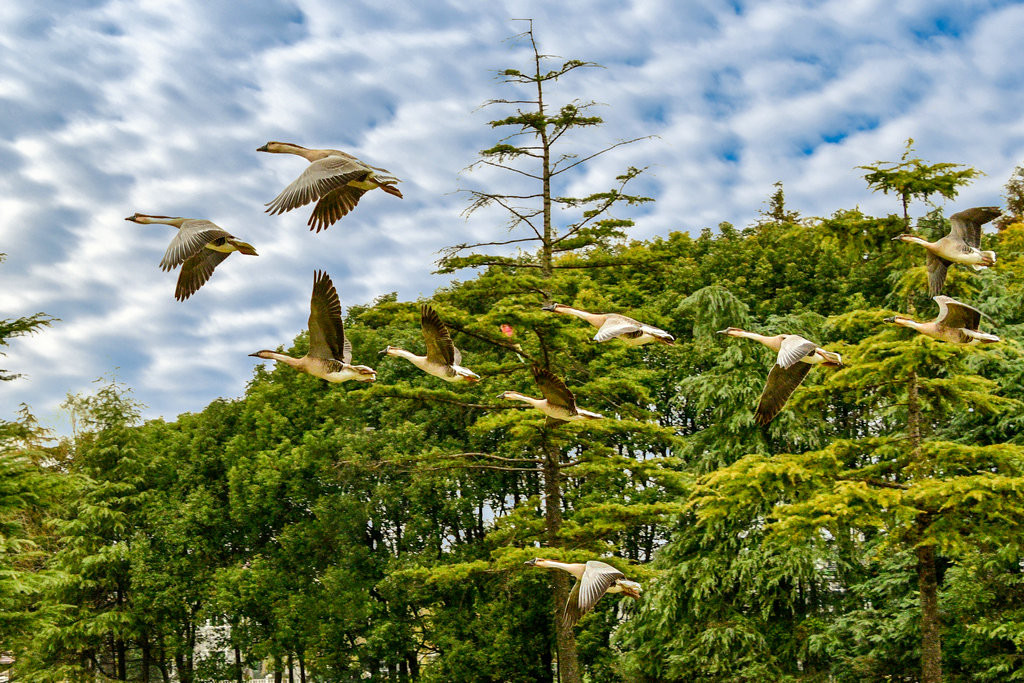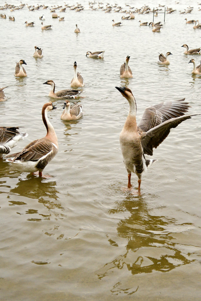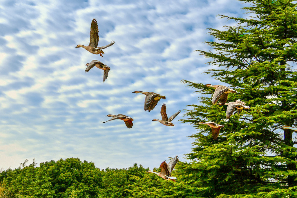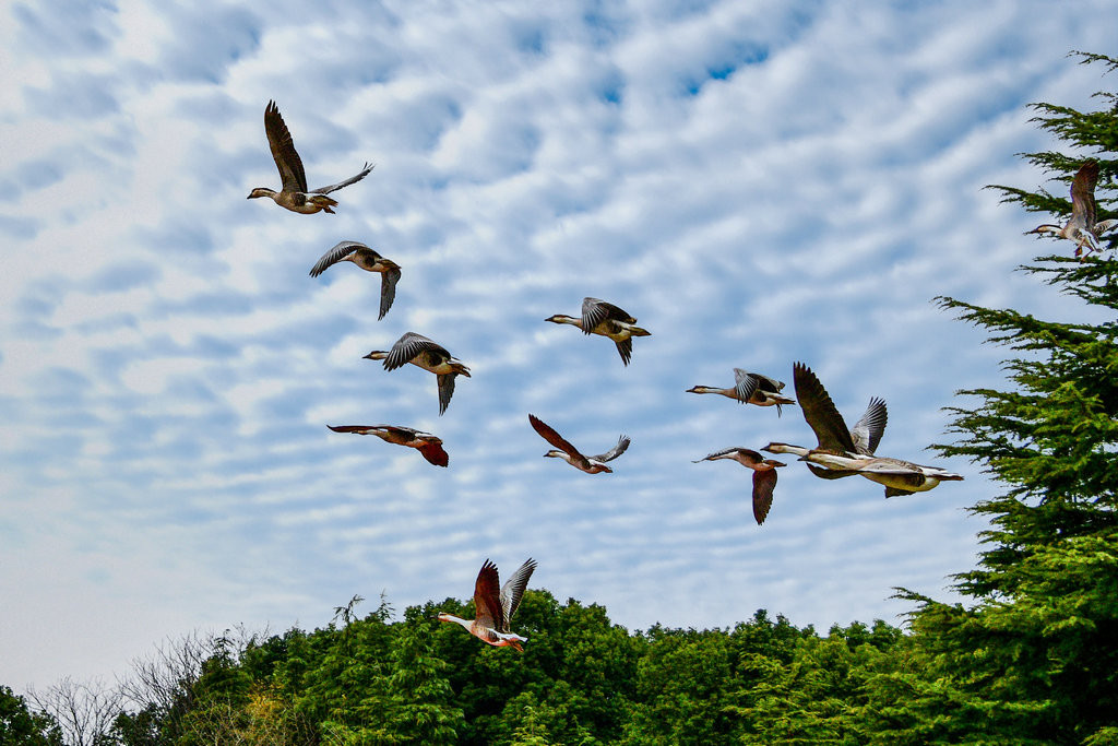 这些大雁目前适应了明珠湖的环境,进过驯化,飞翔表演更完美,景象更壮观