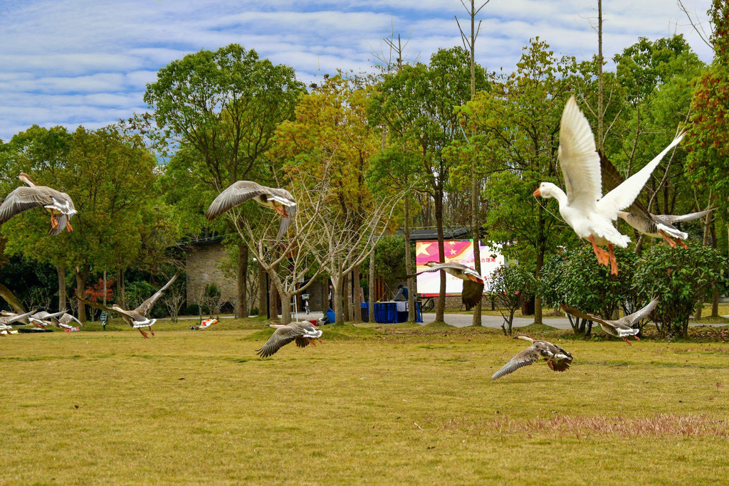 大雁放飞表演时间:上午10:30,下午2:00