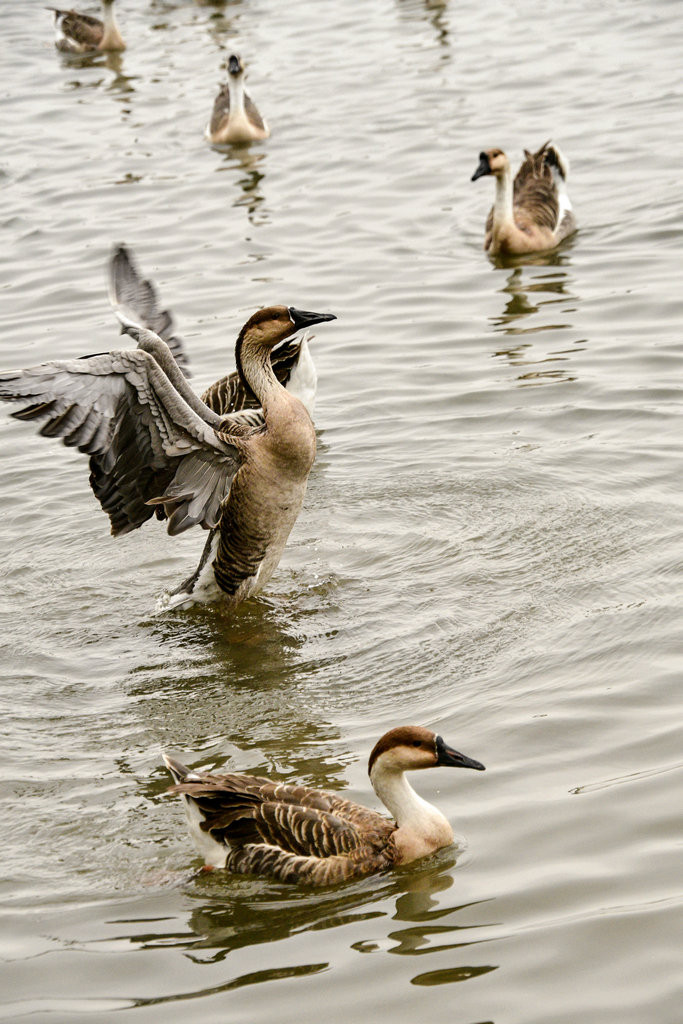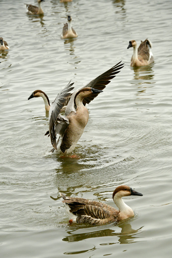 盘旋后落在水面上,开始洗澡、觅食、游玩。