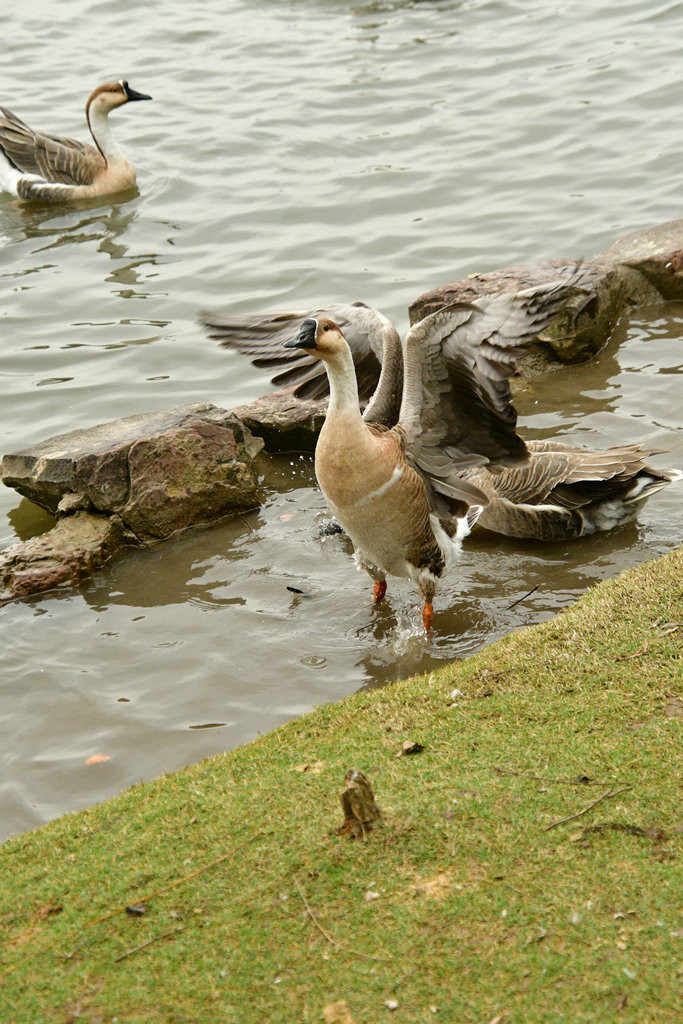 一二十分钟后,它们水里玩得差不多了,它们会走到岸上,