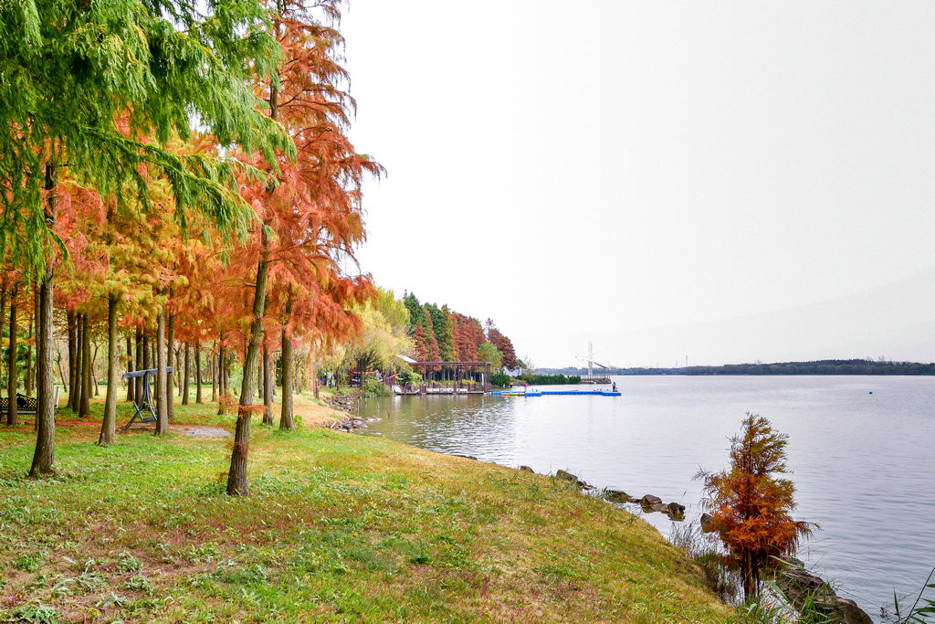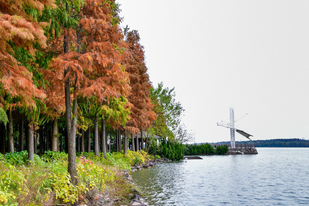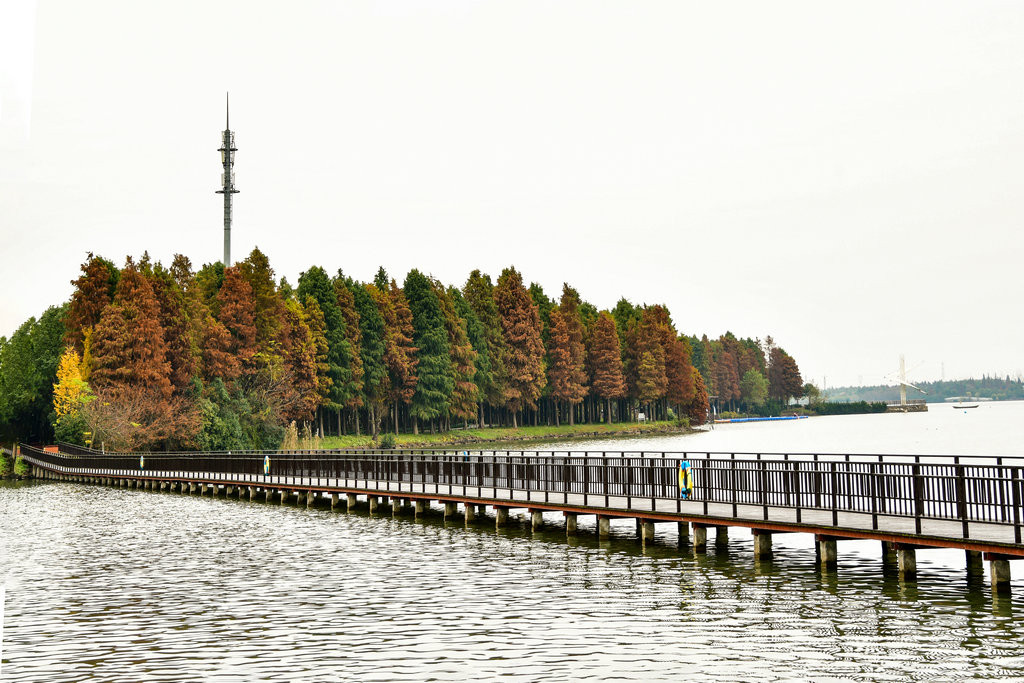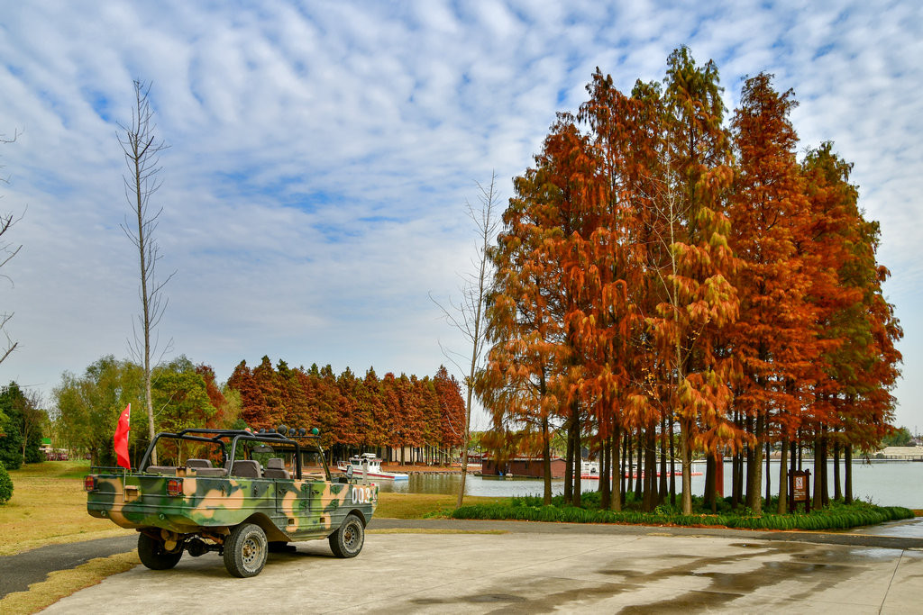 2020年12月5日参加了崇明明珠湖一日游,成人票99/人,一车16位游客,单程乘车2.5小时,10:40到公园门口,导游说这批游客在水中餐厅免费中餐,11:30开饭,算了一下,吃了饭就没有时间环湖游玩,我们放弃了。崇明最大的天然淡水湖,我们花了3小时,走走玩玩看景,环湖一圈。园内有骑行设施,双人车、老爷车、水陆两栖车都有,但去的时候休息日完全没什么人,零零散散的有骑车。偶尔来这种地方吸吸新鲜空气感觉很不错,微微的凉风习来神清气爽,心情也愉悦不少,挺惬意,享受林间清新的空气。