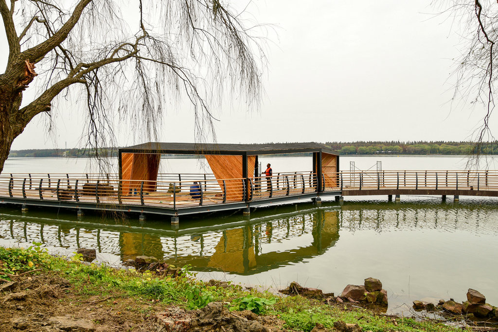 候鸟观赏区:为了让更多游客观赏鸬鹚的同时不惊扰到它们,公园用芦苇搭建了一个隔离墙并在上面开了一个个小窗户,方便游客拍照、观赏。现在崇明岛上家养的鱼鹰越来越少了,只有来明珠湖才能抓住野鱼鹰捕鱼的瞬间。