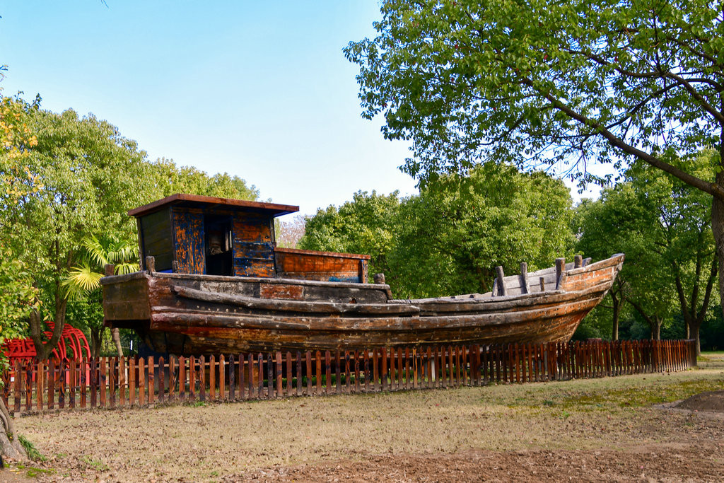 古船遗迹是明珠湖公园北入口第一道风景线,我们在这里摆放这样一艘船,既表示了崇明人民不忘历史,感恩船曾经为岛域经济发展做出贡献,又是为了弘扬船劈波斩浪勇于开拓的精神。