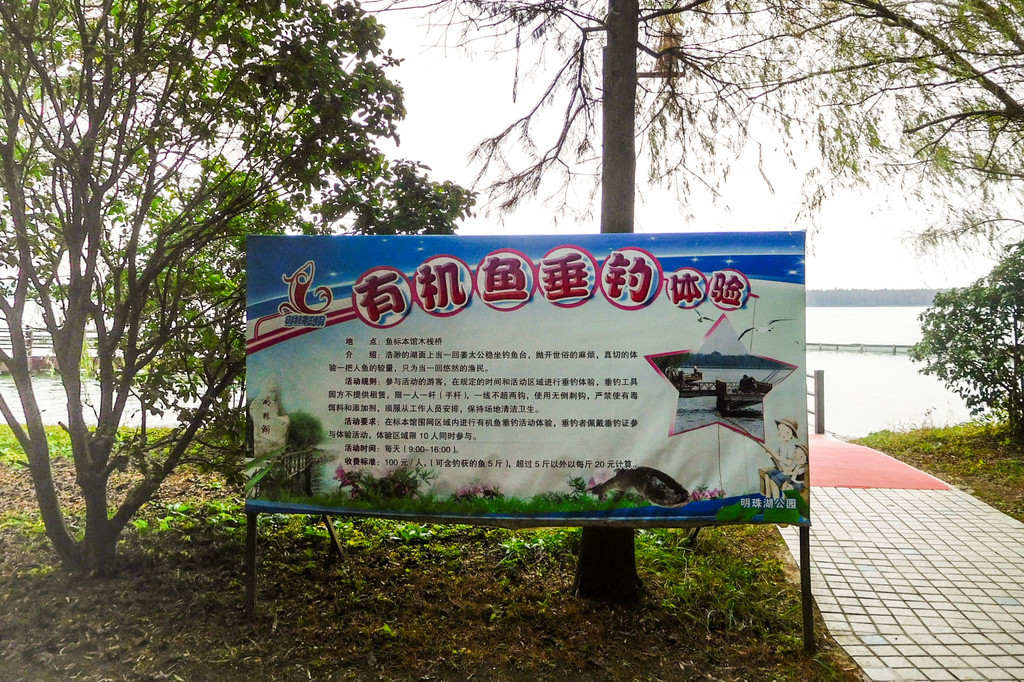 鱼类标本馆:长江鱼类展示,拥有全国最大的乌青王标本,走过头,没有进去,鱼类标本馆位于明珠湖西岸中部,临湖而建,分水、陆两个部分,岸上展示的是生活在明珠湖里的20多种主要鱼类标本,包括长江口四大家鱼(青鱼、草鱼、鲢鱼、鳙鱼),其中尤为著名的就是一条长1.62米,重150多斤的全国乌青王,另外还有长江珍稀鱼类,如:中华鲟、鲥鱼、鮰鱼等;水上部分主要是观赏鱼池,池中有明珠湖常见的鱼类及观赏鱼类体验区,游客们能在这里共享观鱼、喂鱼、戏鱼的乐趣。