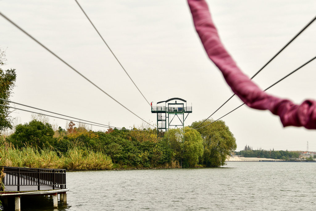 平湖飞渡(滑索)是明珠湖湖上穿越的一项体验项目,使游客在俯瞰明珠湖全景风光的同时真切感受凌空飞渡明珠湖70年代以前作为长江原主航道时的宽度及百年变迁深度的刺激,同时这里也是捕捉拍摄各类飞鸟的绝佳之地。