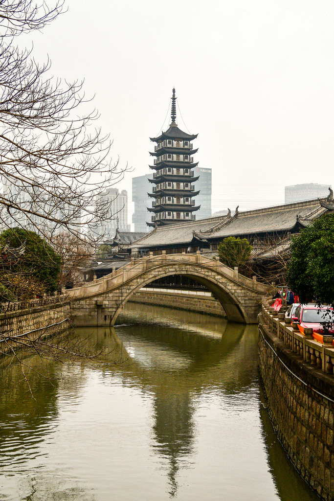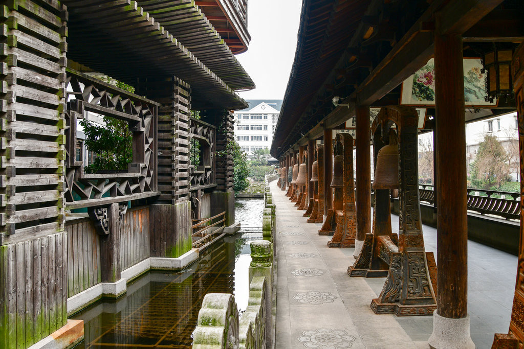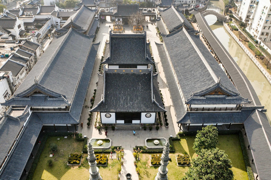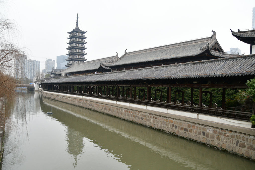 真如寺的北边沿着桃浦河建起一条长廊建筑。