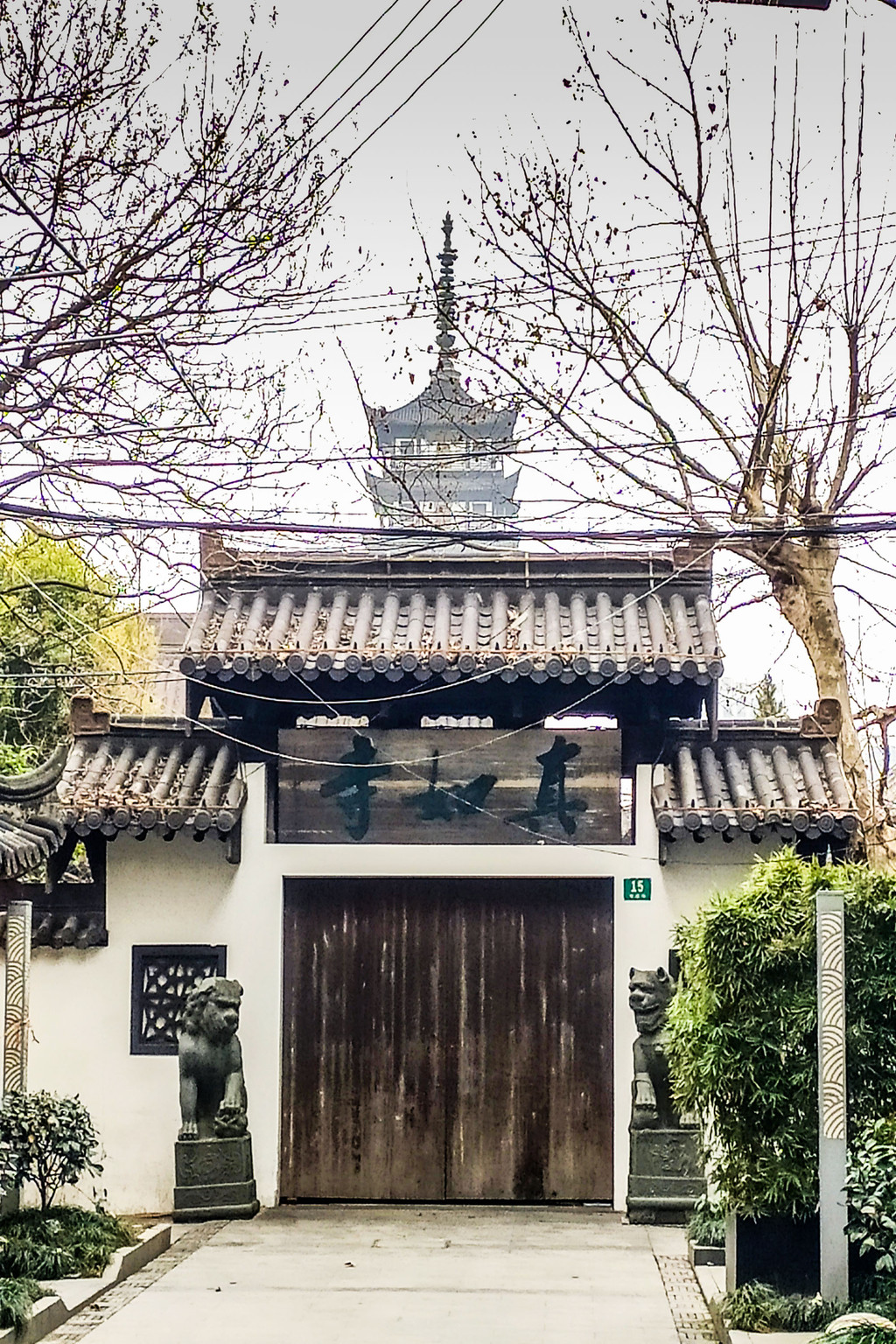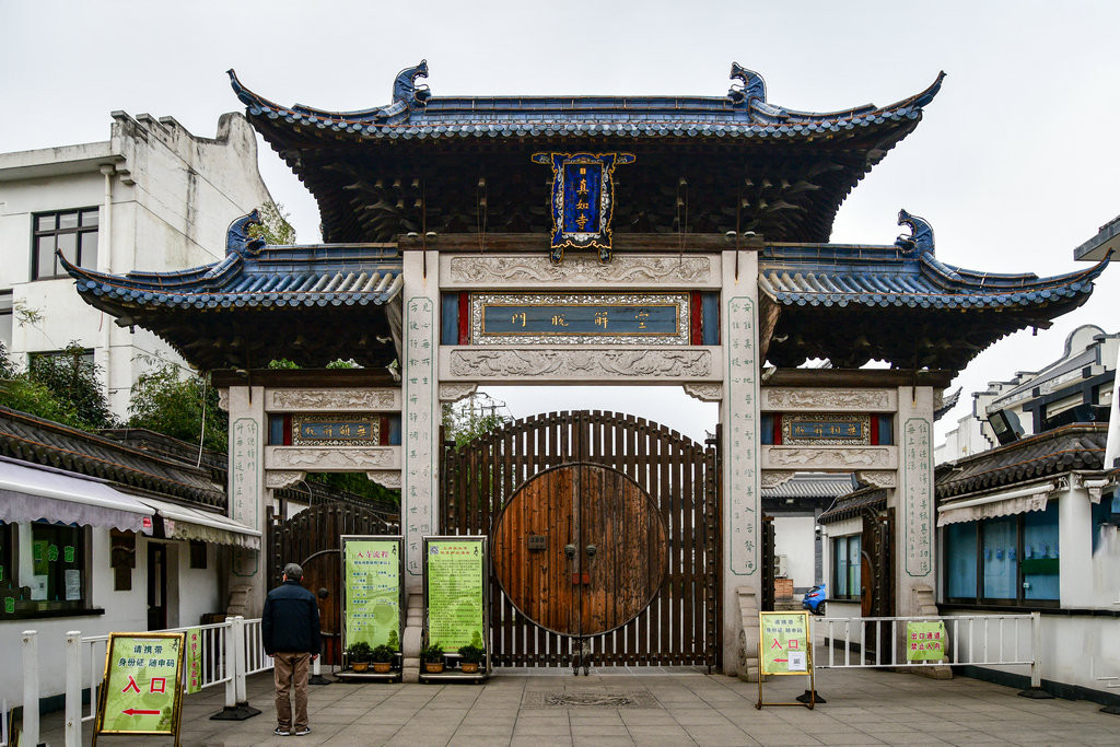 寺内新建了朝东的新山门牌坊、天王殿、圆通殿、藏经楼、念佛堂、往生堂等,并将原隔河的老山门(寺前街15号)封闭保存老山门牌坊上悬木制寺匾
