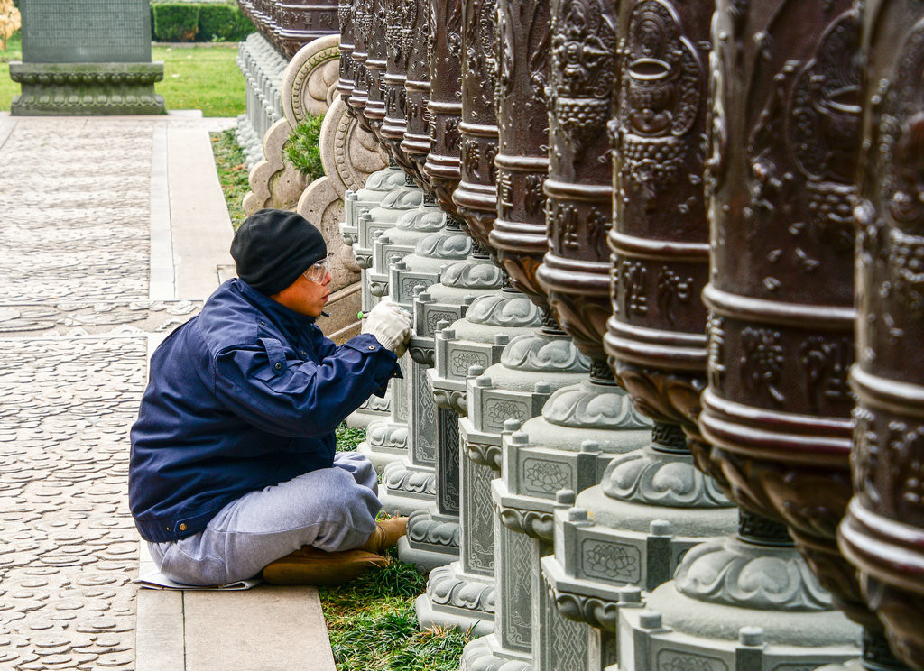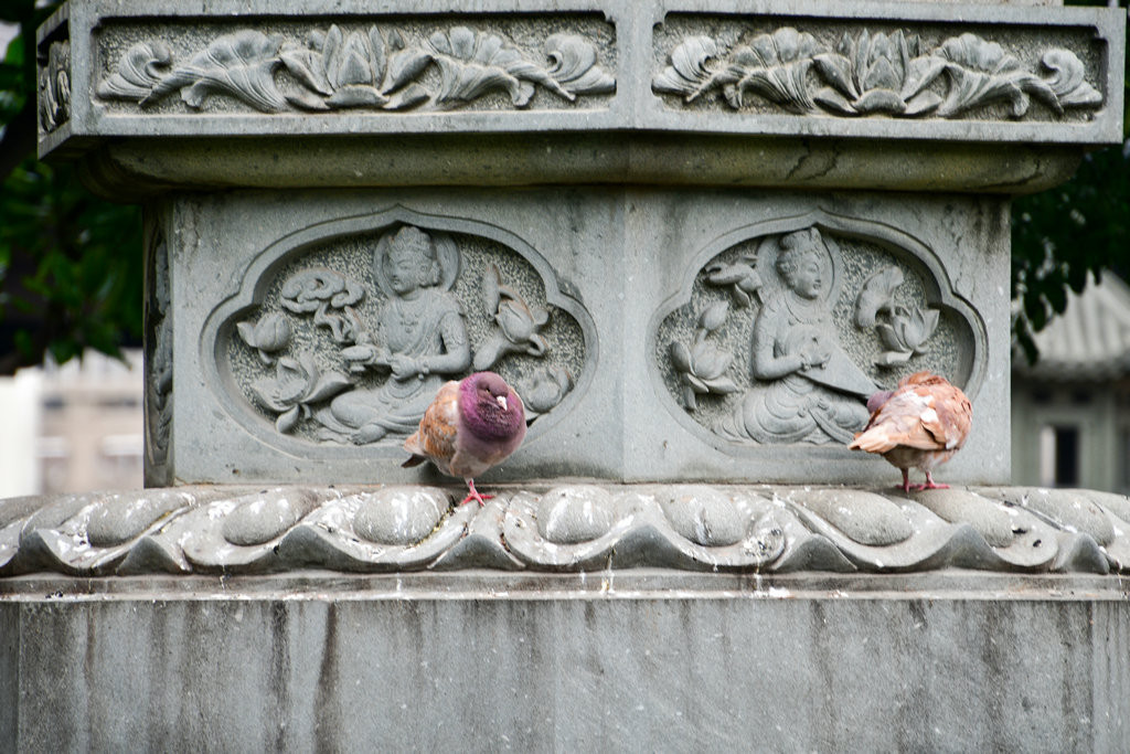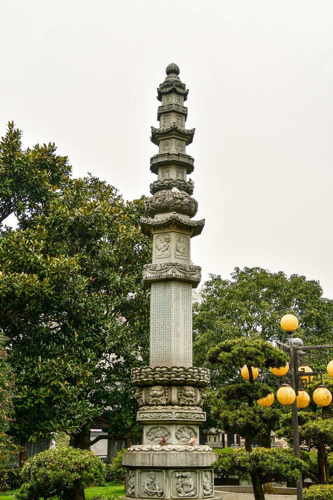 真如塔前面的经幢,上面有许多的小狮子和菩萨,意思也是保护真如塔和带来好运的意思