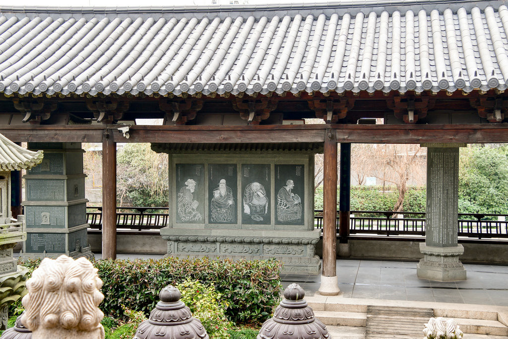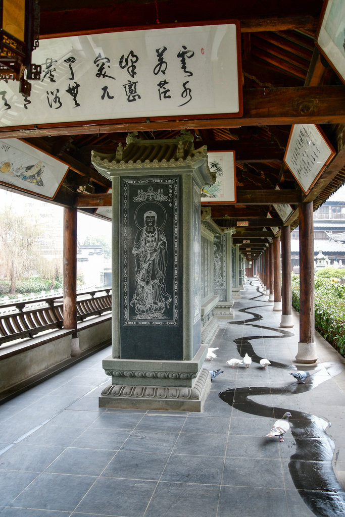 石碑雕刻选题通过佛教千年文脉的梳理,选择其精华部分为题材,配以古今诸多名家之手笔,具有较高的佛教文化艺术之观赏性。碑廊新建碑廊现在不多见,除非古碑廊,说明住持是有眼光的。在廊檐内侧悬有各类当代禅意书画作品,这个佛教文化长廊是真如寺的一大特色亮点。