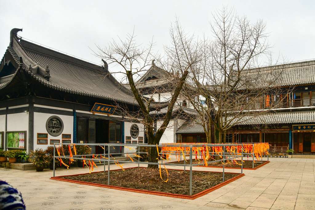 其中西边那棵是当时创寺僧人所种植,与古寺同样年龄,都已经七百余岁,亦为真如一宝。现在的古树绿荫参天,生机勃勃,四周有围栏保护。围栏上,常系满善男信女的许愿红结,祈求平安快乐。