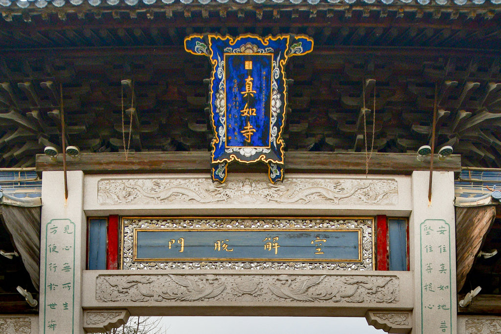 老山门位于上海普陀区真如镇街道兰溪路399号,正中由中国佛教协会会长赵朴初题写了"真如寺"三个斗大的墨字