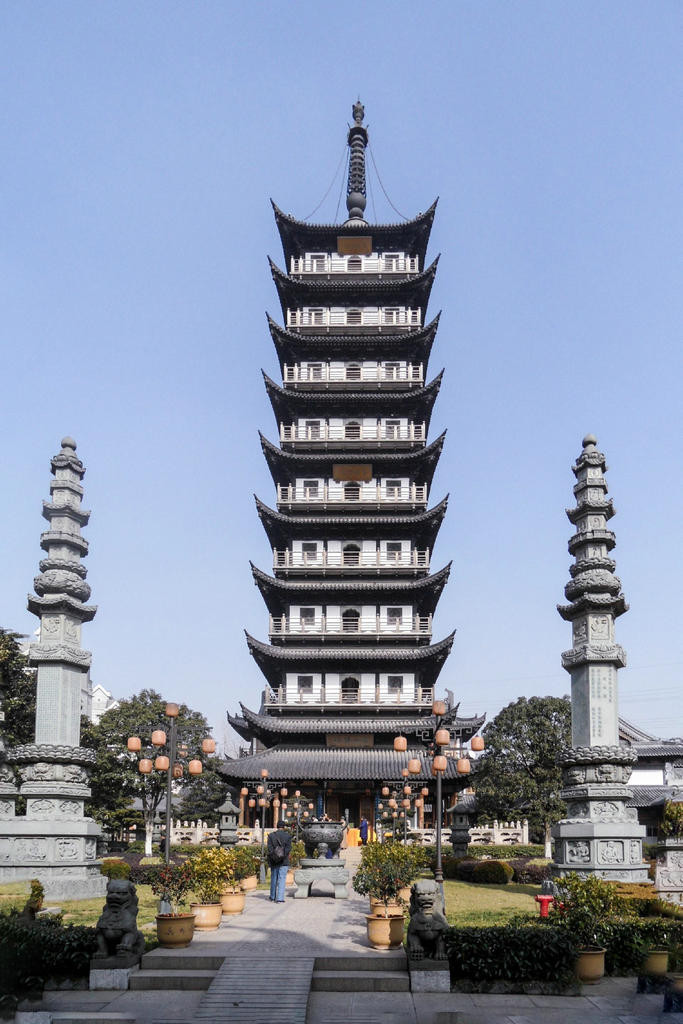 真如宝塔,外九层,内十层,加上地宫共十一层。真如寺是沪上最旱供奉佛陀真身舍利的寺院,2004年11月14日,妙灵长老等一行亲自赶到浦东国际机场,特别将佛祖真身舍利迎请入寺,并供俸亍佛塔地宫。