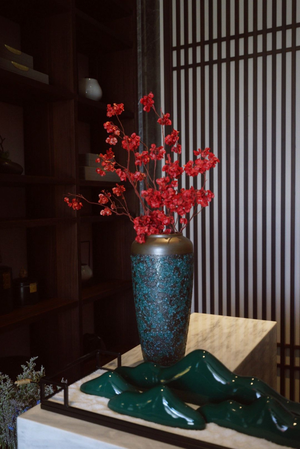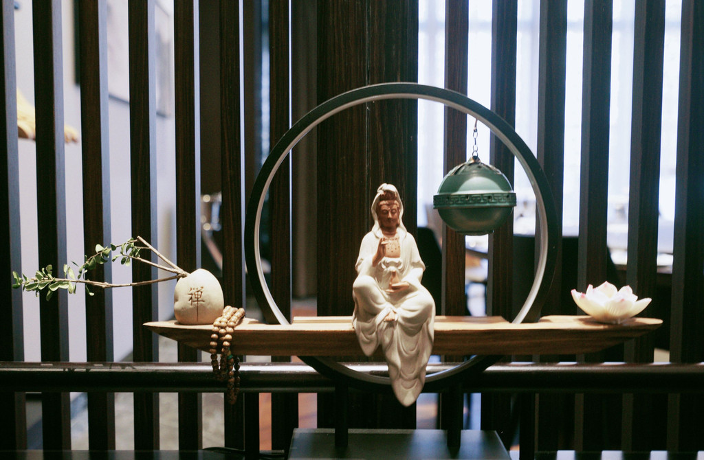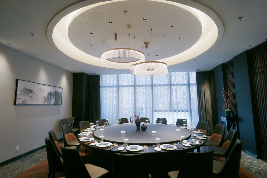 餐厅都是包房共有11间,每间以不同花来命名,例如桂花厅、玫瑰厅、牡丹厅、玉兰厅、丁香厅。包房偏厚重色彩,低调中有意境与气质,茶几上饰品摆放彰显东方气质,尊贵而典雅。