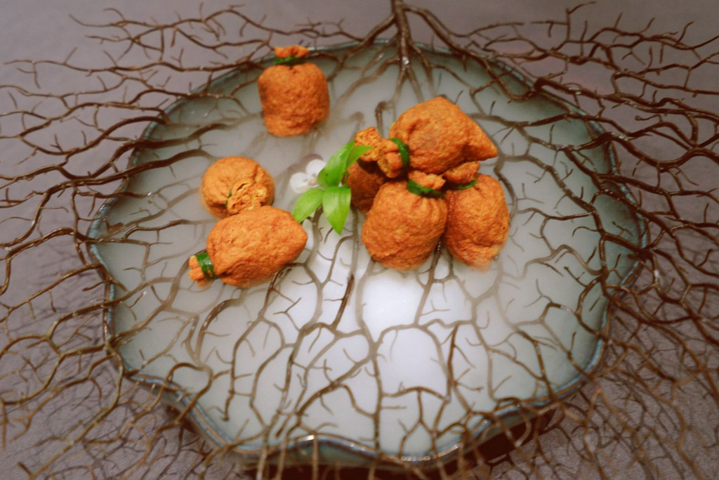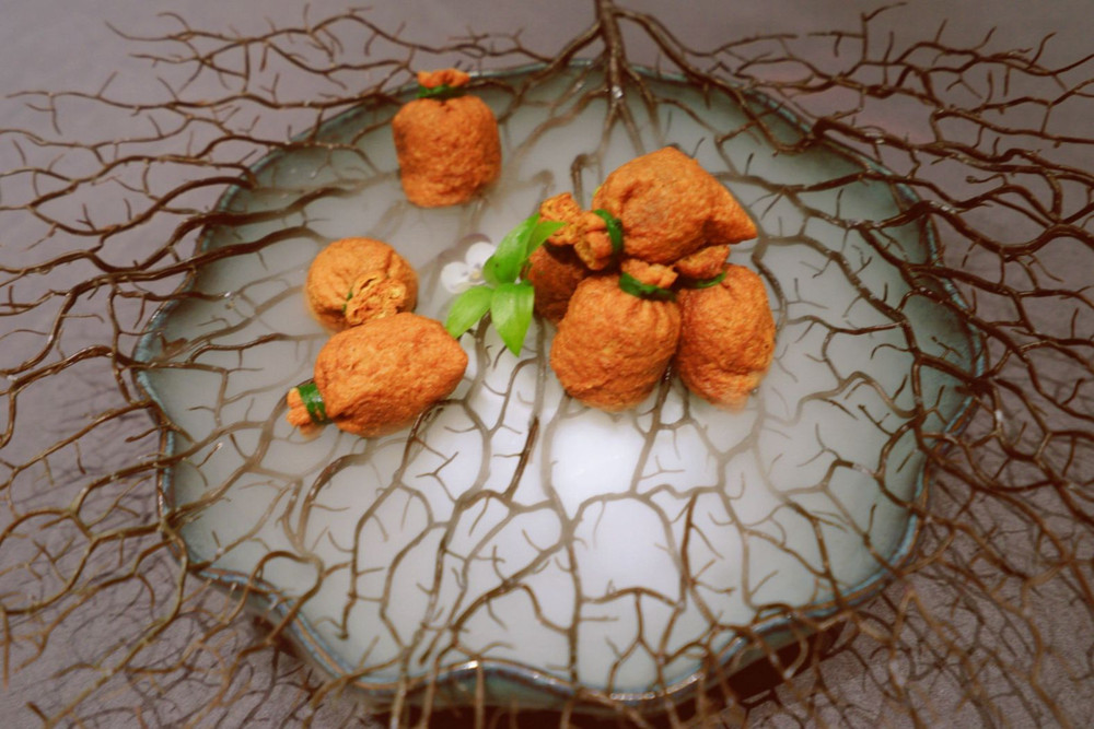 #松露酱布袋豆腐包#摆盘漂亮,布袋豆腐内包裹着菌菇夹杂着黑松露,入口软糯有嚼劲,咸鲜微甜,回味无穷。