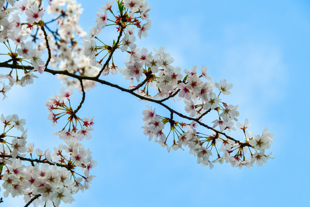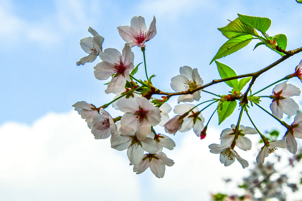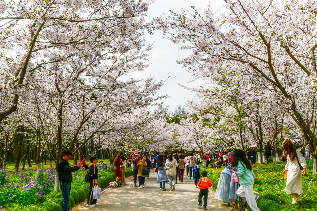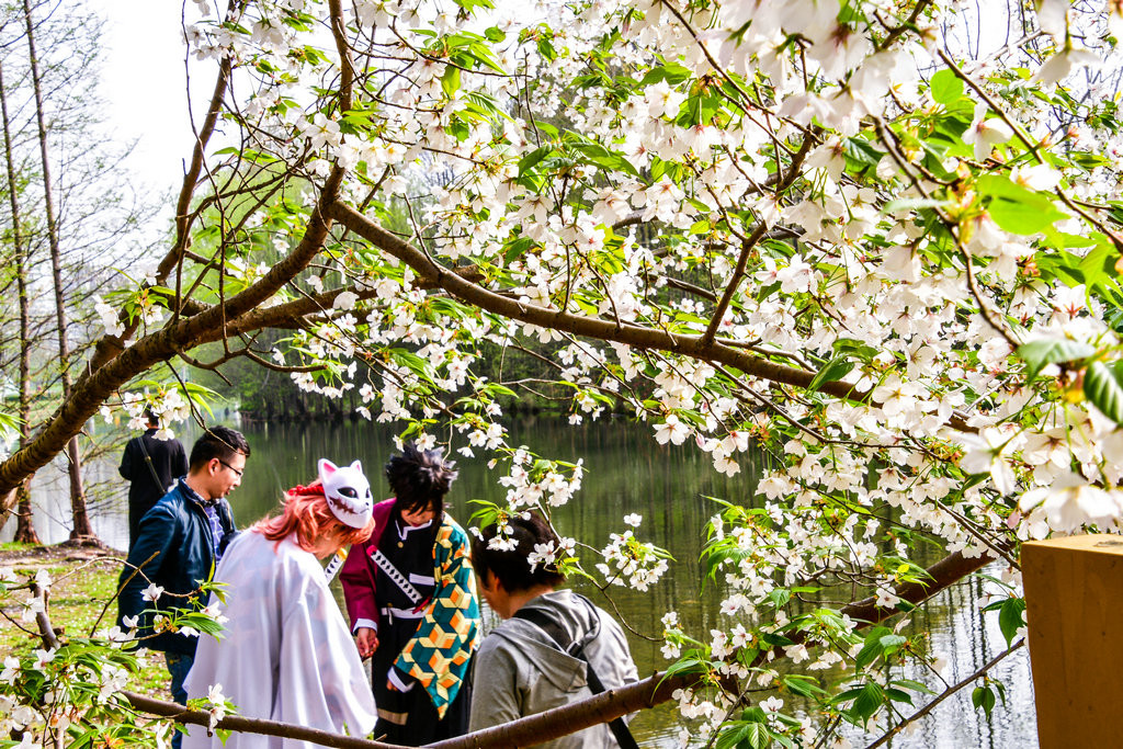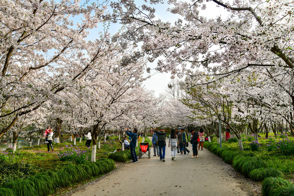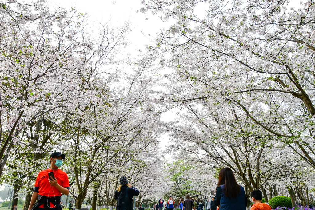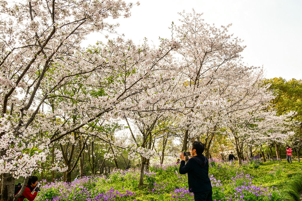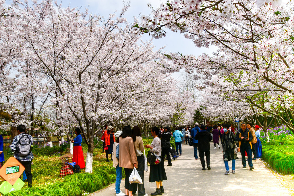 1000多株各色樱花沿着半岛中心的路径错落有致的排列开来。岛内种植的樱花主要以先花后叶的樱花为主,大都属于中晚樱品种,花瓣单层,有的是淡粉色的染井吉野