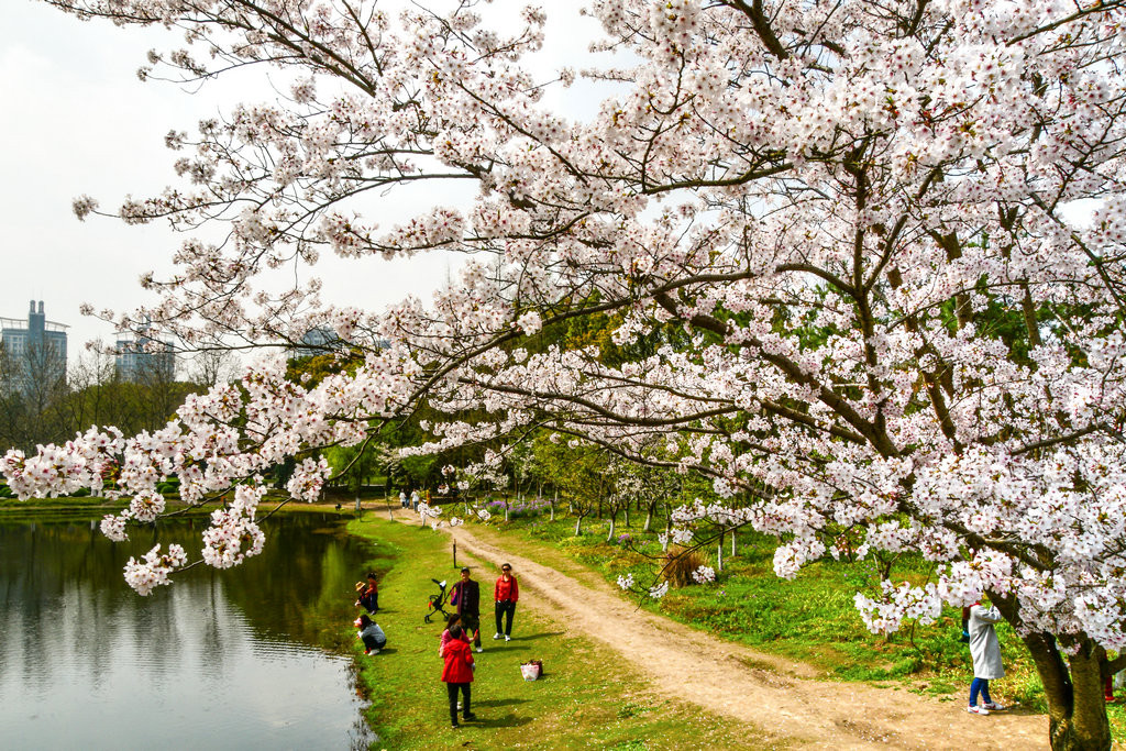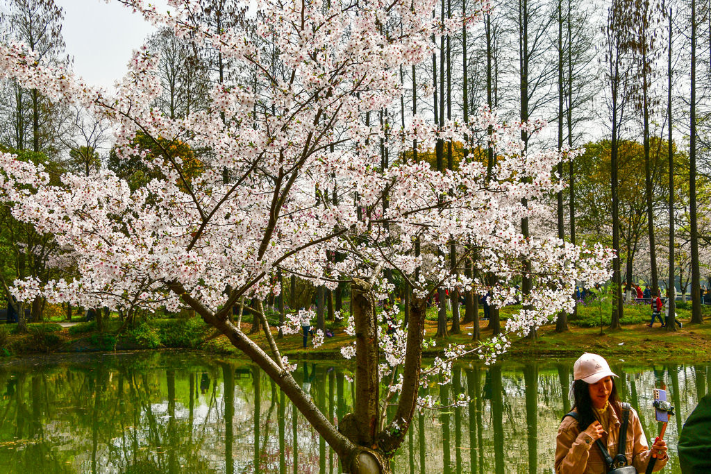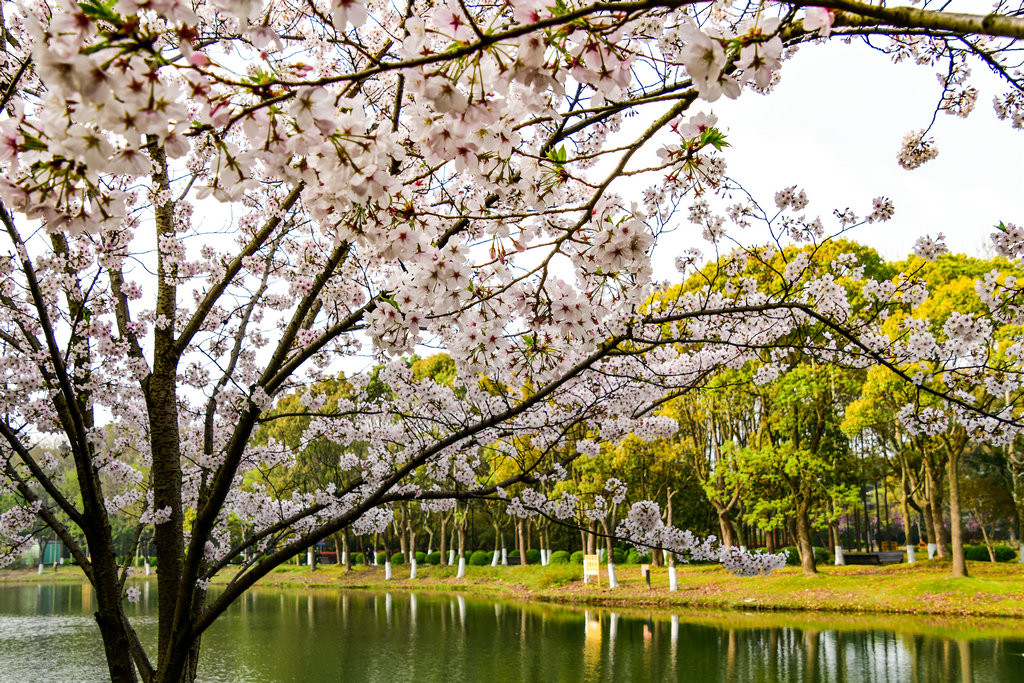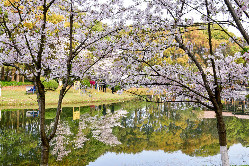 每当樱花盛开时节,漫步樱花林小道,满树烂漫,落英缤纷,水影婆娑,惬意放松