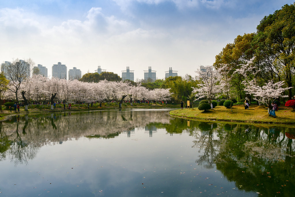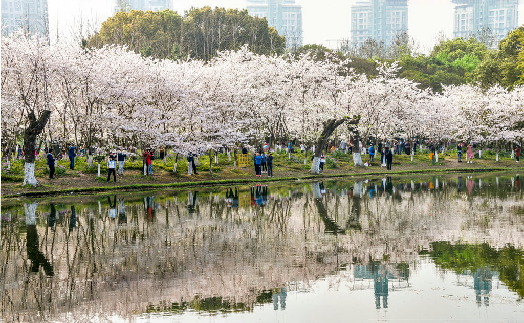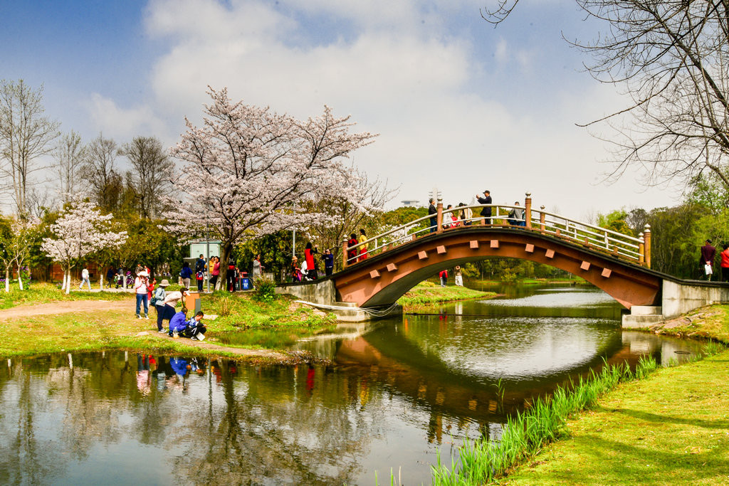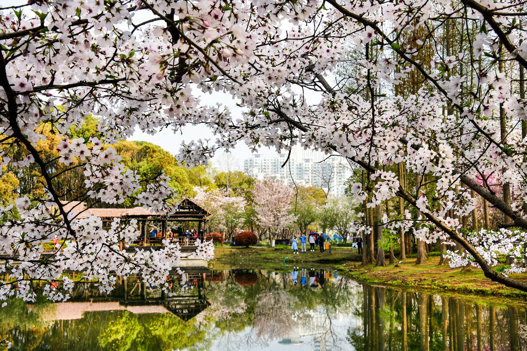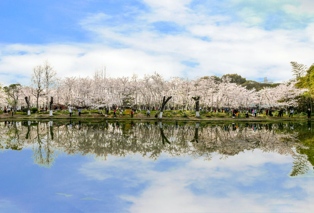 每当樱花盛开时节,漫步樱花林小道,满树烂漫,落英缤纷,水影婆娑,惬意放松