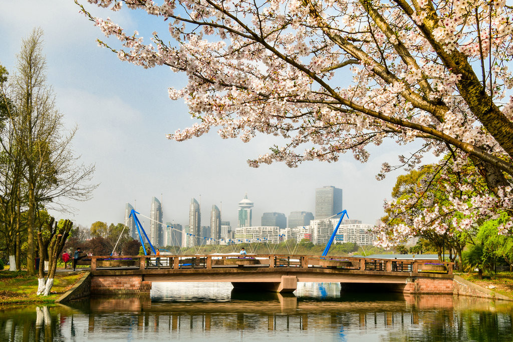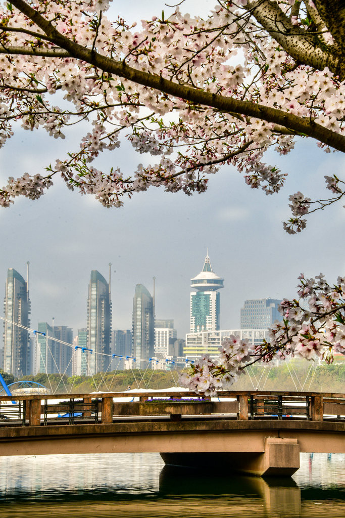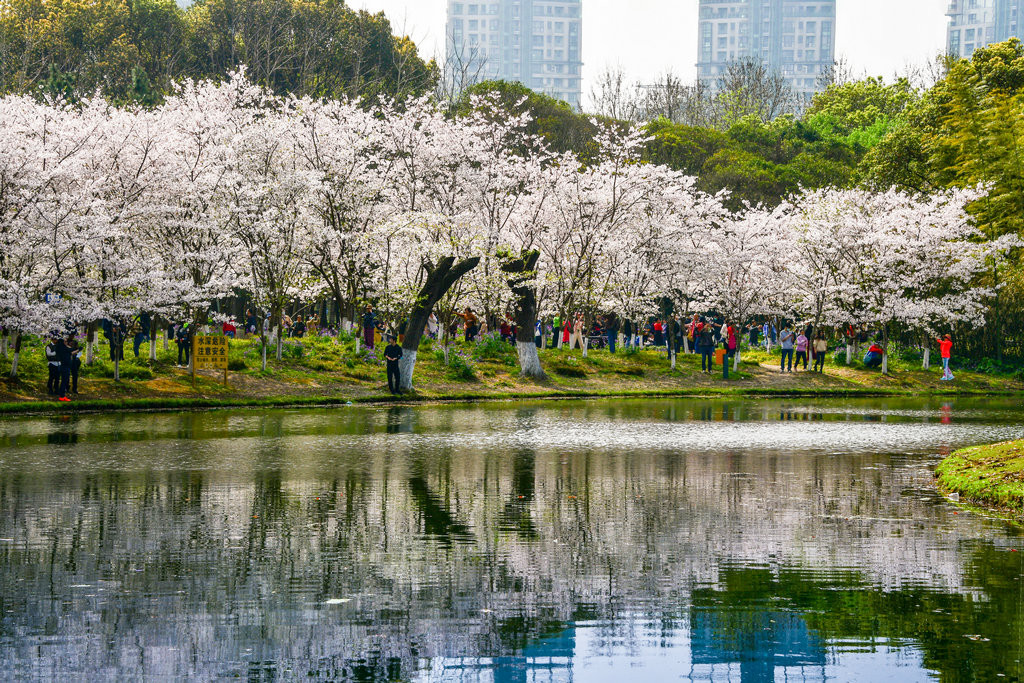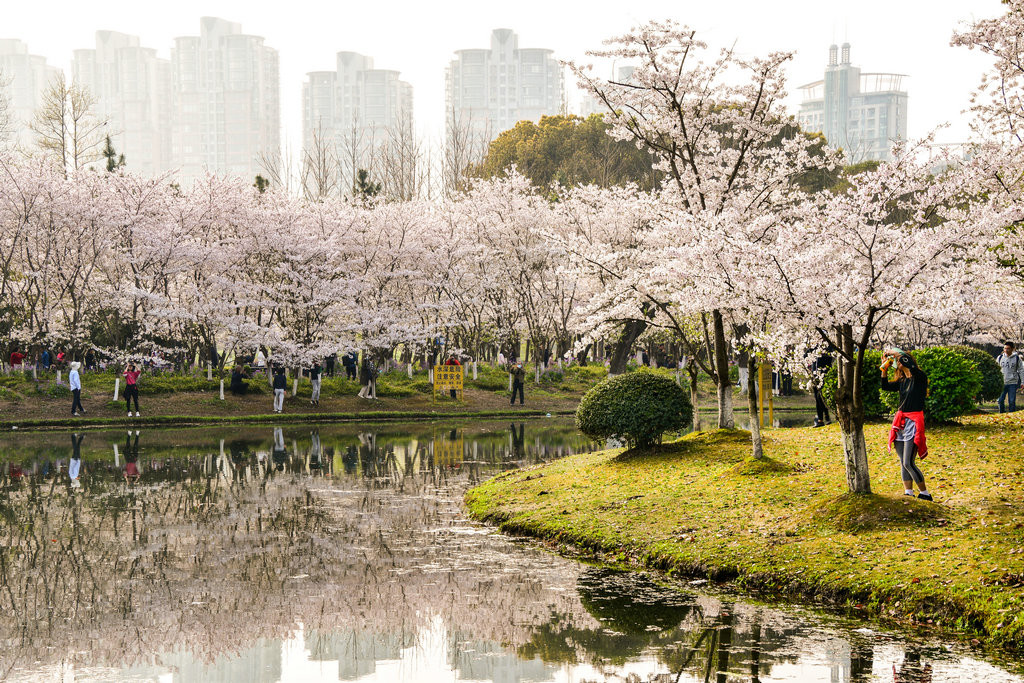 樱花也是世纪公园的一大亮点。园方在公园中央的半岛区建成樱花岛,小岛四周水系环抱,竹柳相伴,景致浪漫。