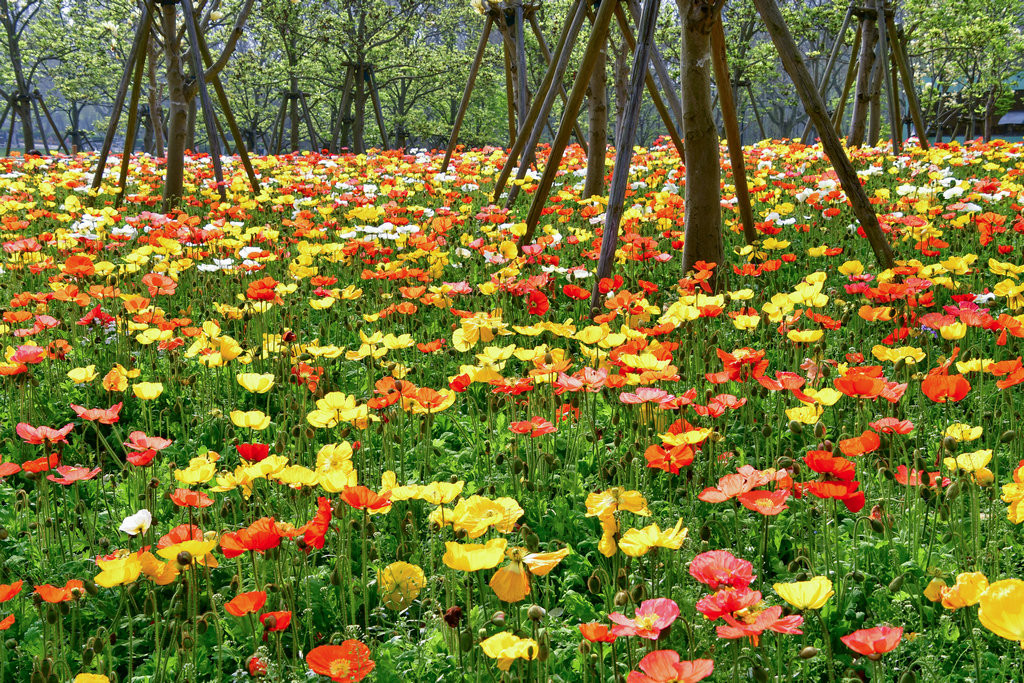 虞美人和大草坪做伴,在这里搭个帐篷,简直就是世外桃源的模样