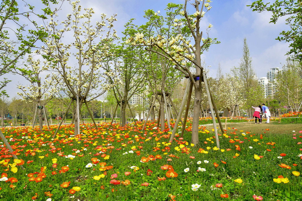 乱花渐欲迷人眼,我们去时除樱花、油菜花之外,还有虞美人和黄玉兰花海
