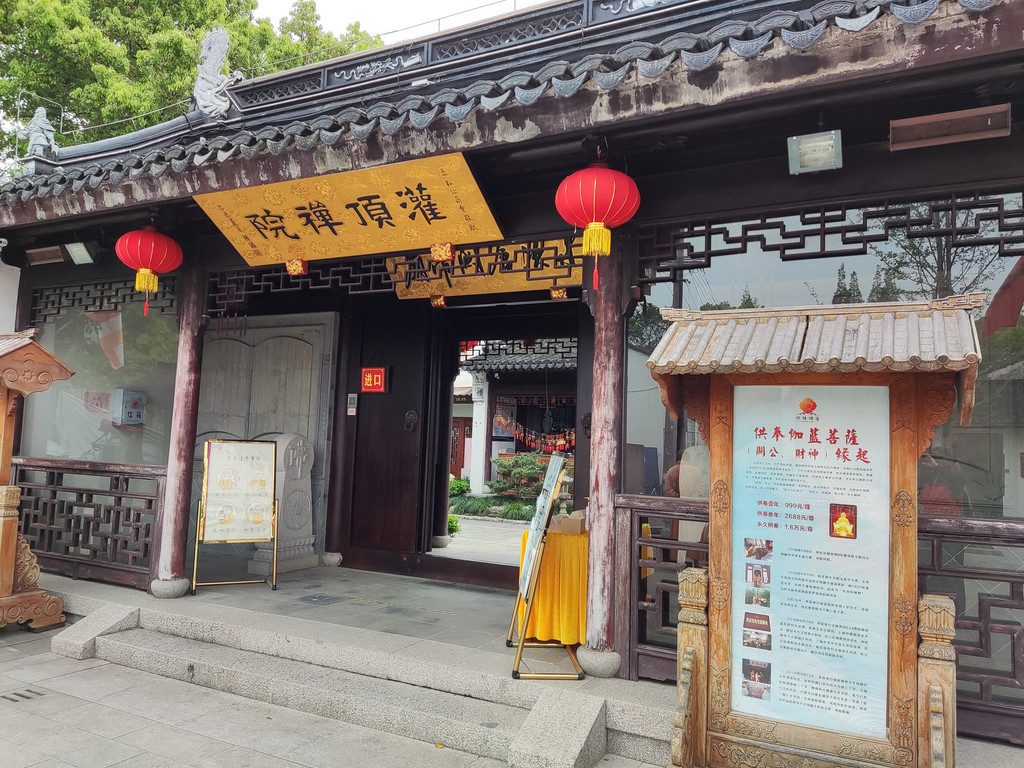 灌顶禅院原来是水次仓关帝庙,始建于明朝,初意是借关羽神武忠义之高节用于镇宅护民,到乾隆年间,被名为灌顶禅院,2014年由松江佛教协会对其进行了修缮,现属佛教活动场所,为佛教护法伽蓝菩萨关公道场。