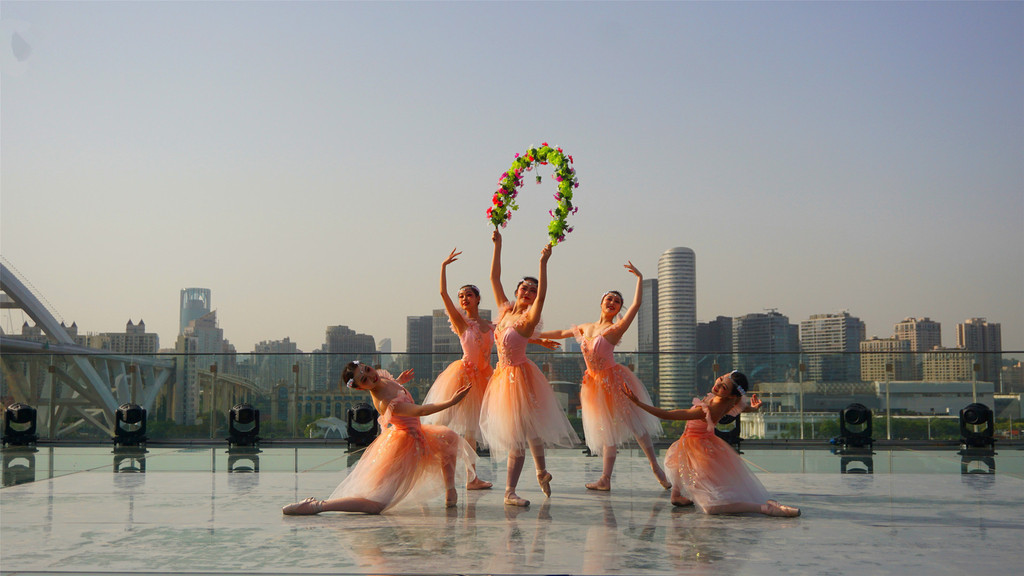 换个心情,顶层七楼翩翩起舞的《花之舞曲》,芭蕾舞演员曼妙的身姿,在黄浦江畔形成一道亮丽的风景线。