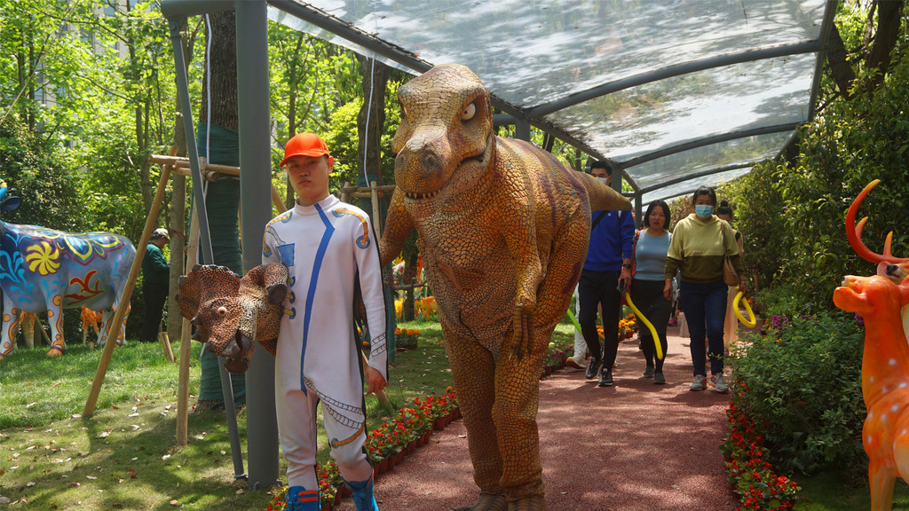 咦,突然人头攒动,原来是《寻找侏罗纪》,出现在彩色森林之中。