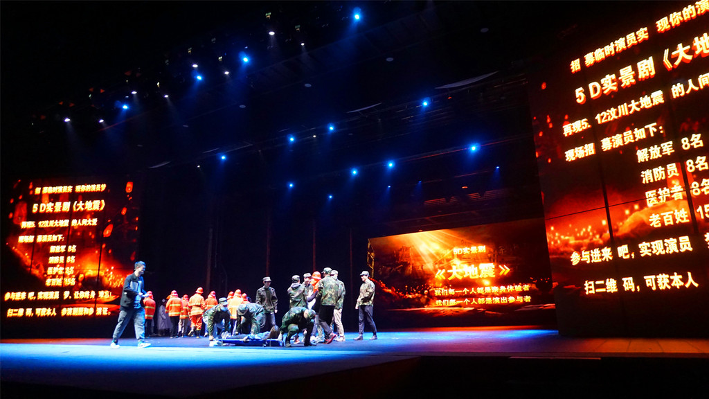 又到看秀时刻,位于一楼的2号剧院的《大地震》,除了是实景演出,观众们还可以互动,真的是很棒。但是一出场,我就泪目了,2008年的汶川大地震,仿佛就在昨天。
