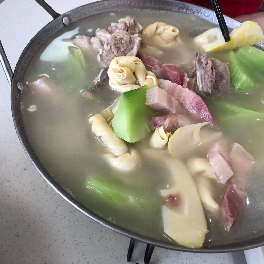 据说是春天必喝的一道汤,以排骨和春笋为原料,汤味是咸鲜咸鲜的,我们在苏州喝了一次在上海也喝了一次,这个不像其他上海菜一样不同店铺会有很大的区别。每家店的都很好喝,我还是比较喜欢加了更多蔬菜的腌笃鲜。