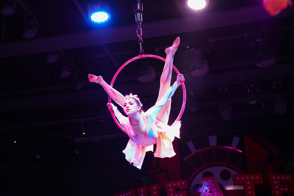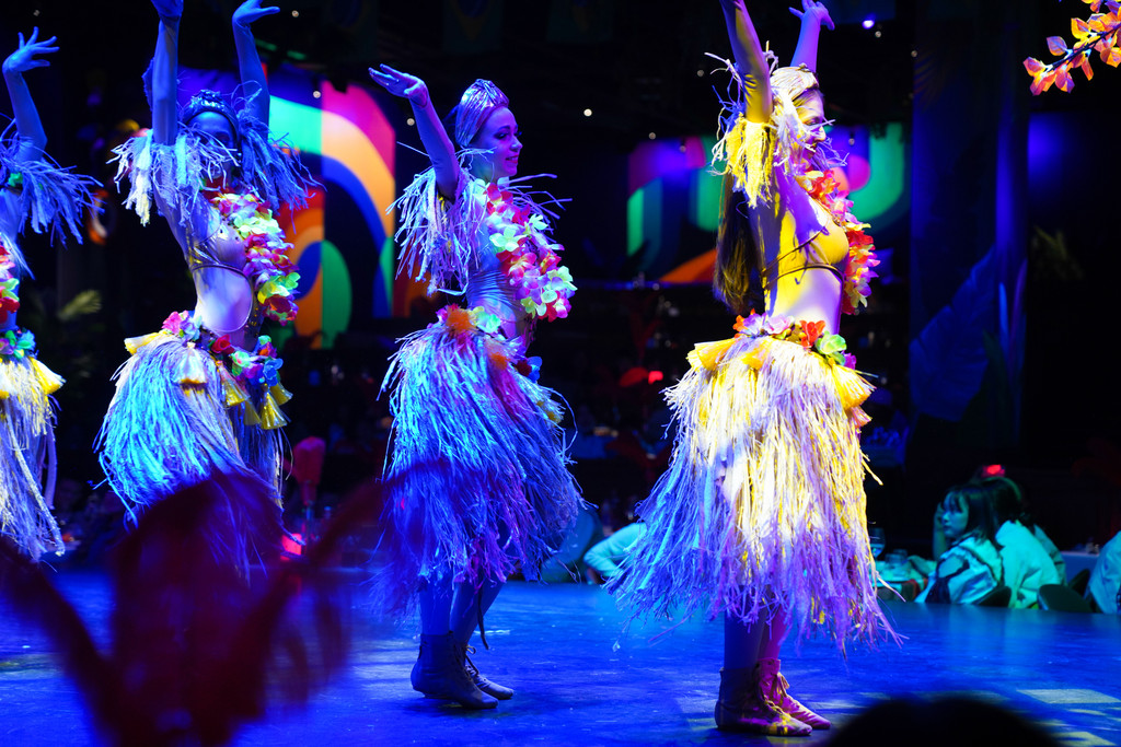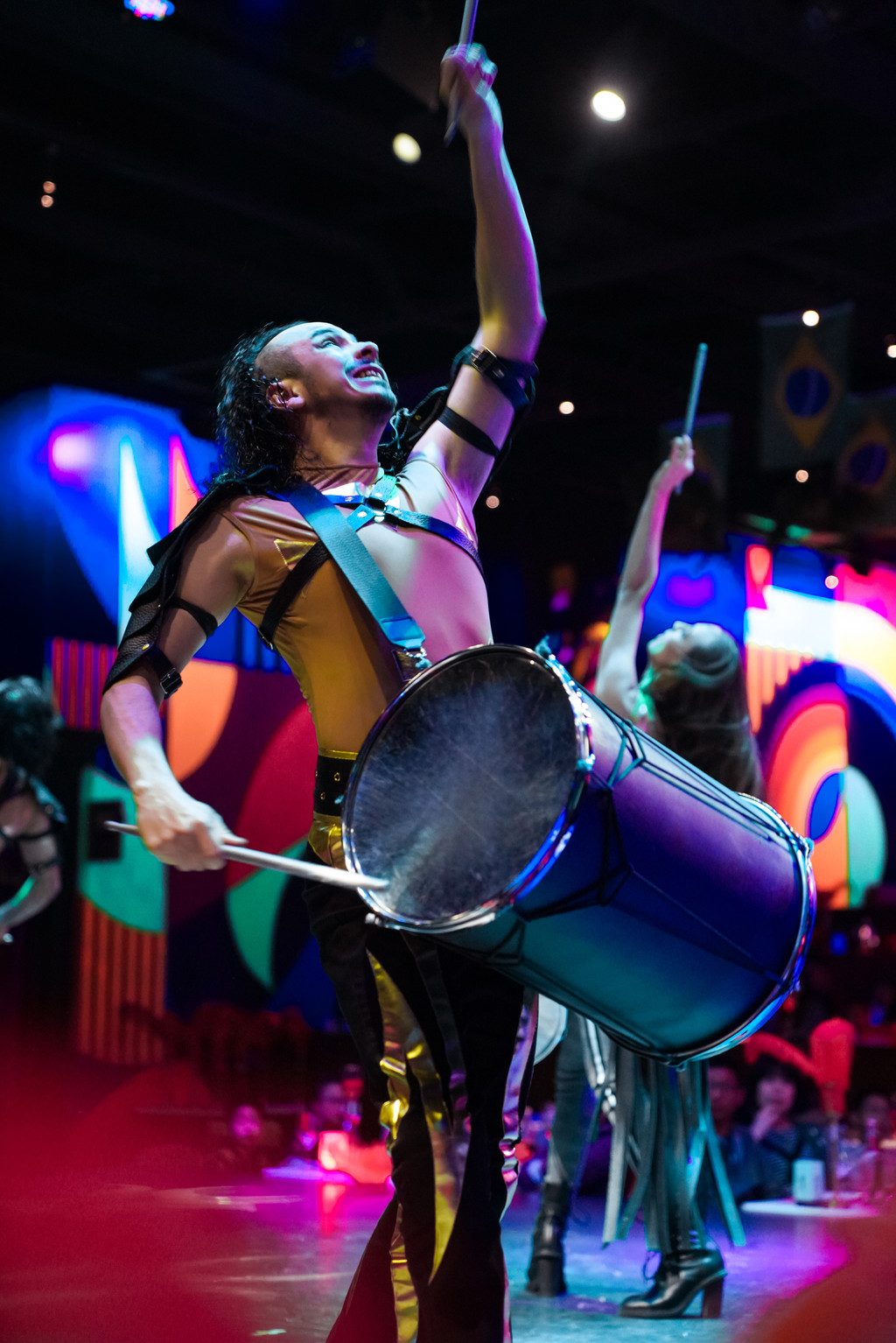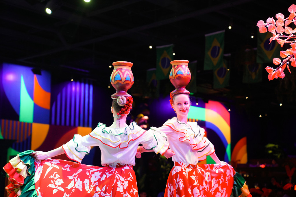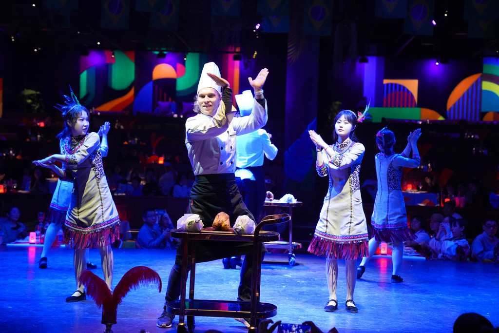 阿根廷、古巴、乌克兰、俄罗斯等多国演员的热力奉献,酣畅淋漓、劲爆十足!彩裙翩跹,从天而降的美洲少女风韵娉婷,演绎着一场盛大的南美洲“空中芭蕾”。演员舞动着将餐食送到餐桌,你可以边欣赏舞台表演,边吃东西。视听与味蕾的盛宴,美食与热舞皆不可辜负,尽情洋溢你的快乐吧!