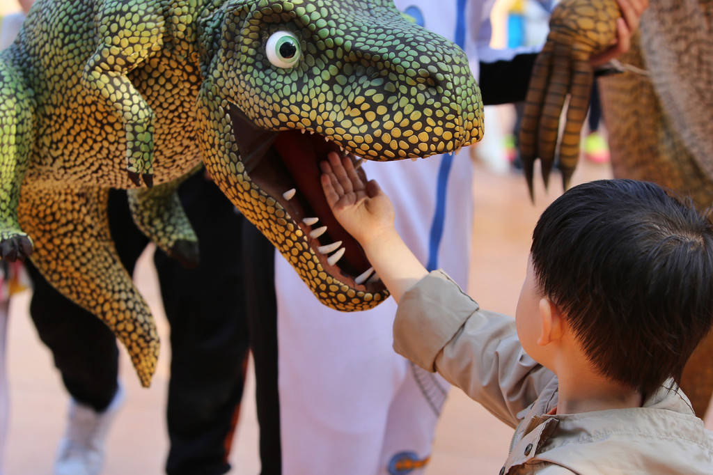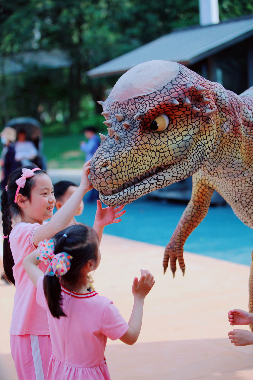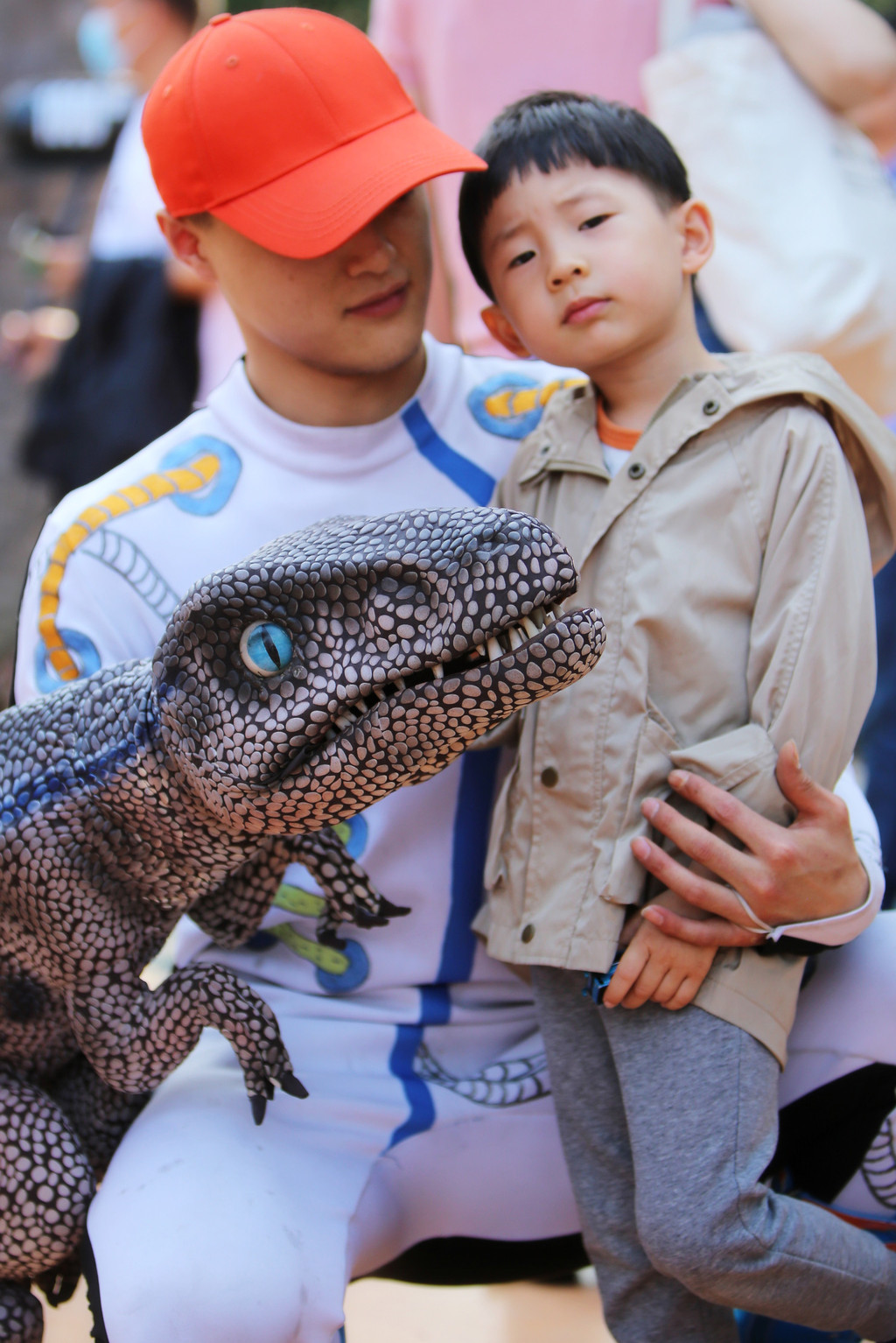 特别与众不同的是,《WA!恐龙》这场秀有几个和孩子互动的环节特别受孩子喜欢,从秀开始前,就有工作人员拿着不同的小恐龙和孩子友好互动,鼓励他们摸摸恐龙,和恐龙合影。秀中途科学博士还会把恐龙蛋抛向观众席,孩子们尖叫着守护恐龙巨蛋不被疯狂的翼龙抢走,参与感满满;最后秀结束在室外广场上,孩子们和秀场的恐龙亲密接触,用手抚摸恐龙的皮肤,感受恐龙这庞然大物的热情与友善,真的能建立很多具象感受与认识。这是瞧瞧巨大收获的一天。