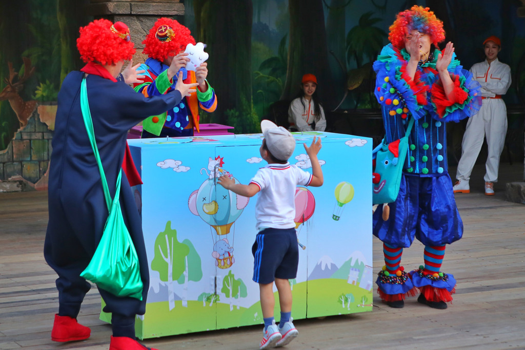 《WA!恐龙》看秀tips:我们去是下午场表演,如果不确定最好和里面的工作人员确定一下时间。《WA!恐龙》结束后,紧接着在一层森林剧院广场就有一场《寻找侏罗纪》,是节目里的恐龙在户外和小朋友互动,千万别错过。夏天秀场空调很足,记得带一件薄衣服,进去后如果感觉凉就给小朋友穿上。