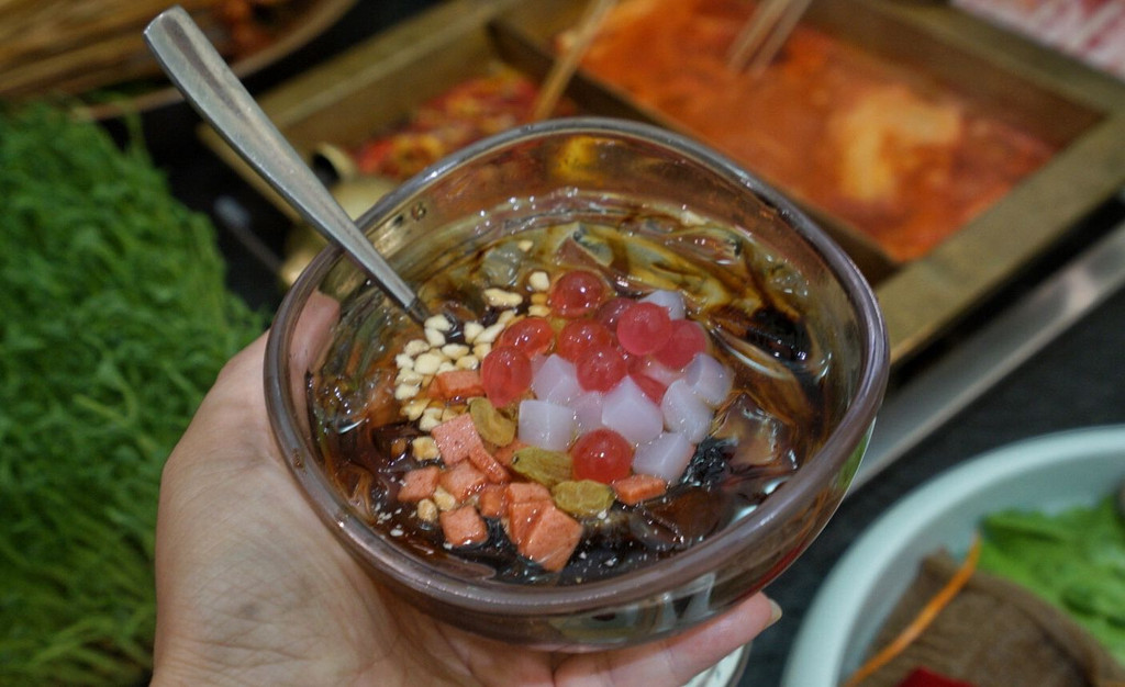 吃完火锅再来一份冰凉粉,晶莹剔透、口感细滑,加上亮晶晶的冰粉与甜甜的葡萄干和酸酸的酸梅粉,真是沁人心脾,嘴里的辣味一扫而空,反而感觉一丝清凉和甜蜜舒爽。