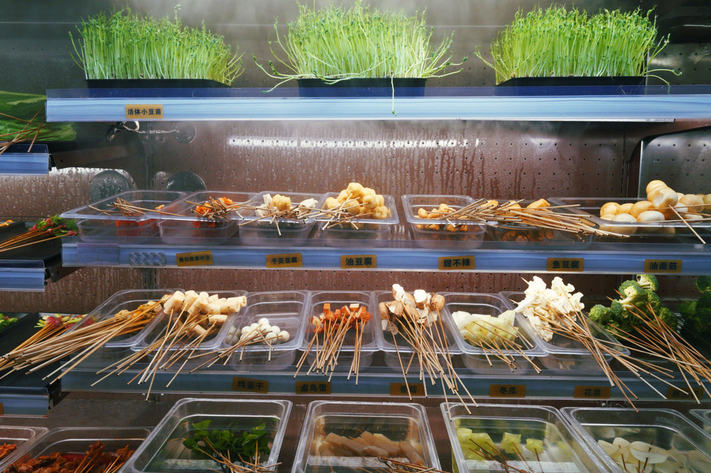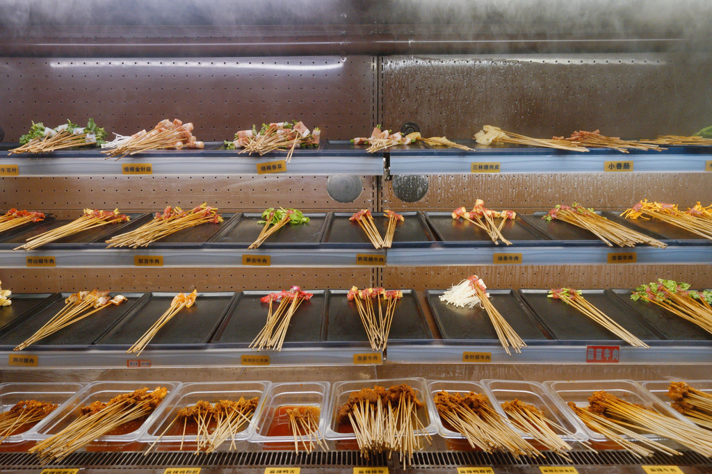 它家的串串放置在敞开式大的立体冰柜内,自取,1元一串,吃多少拿多少,不要浪费哦。