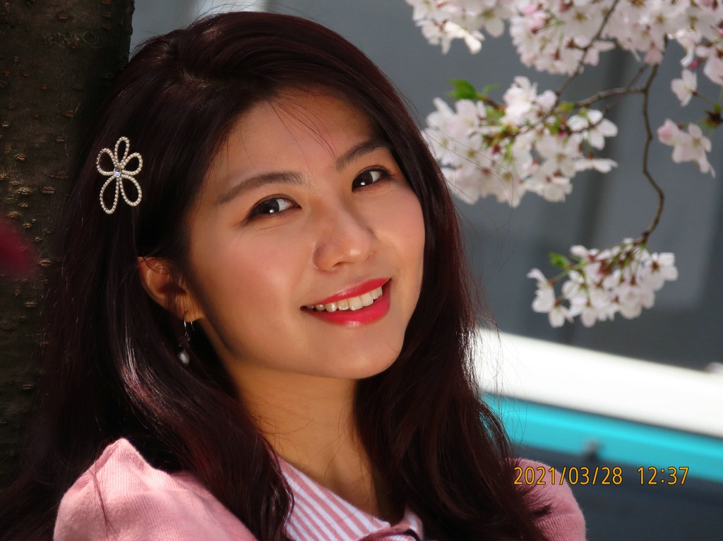 此两幅街拍照,是三月份采风南浦大桥枢纽站樱花季时,偶然拍摄到的(见《樱花车站尽笑脸/一年一度成常态》),考虑到毕竟为蹭拍之作,拖了一个多月,直到本周才投稿太平洋摄影论坛。而且,不仅祇选投两幅,照片上还特意保留拍摄时间标识,表明并非专业作品。