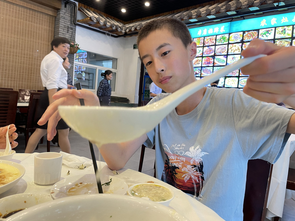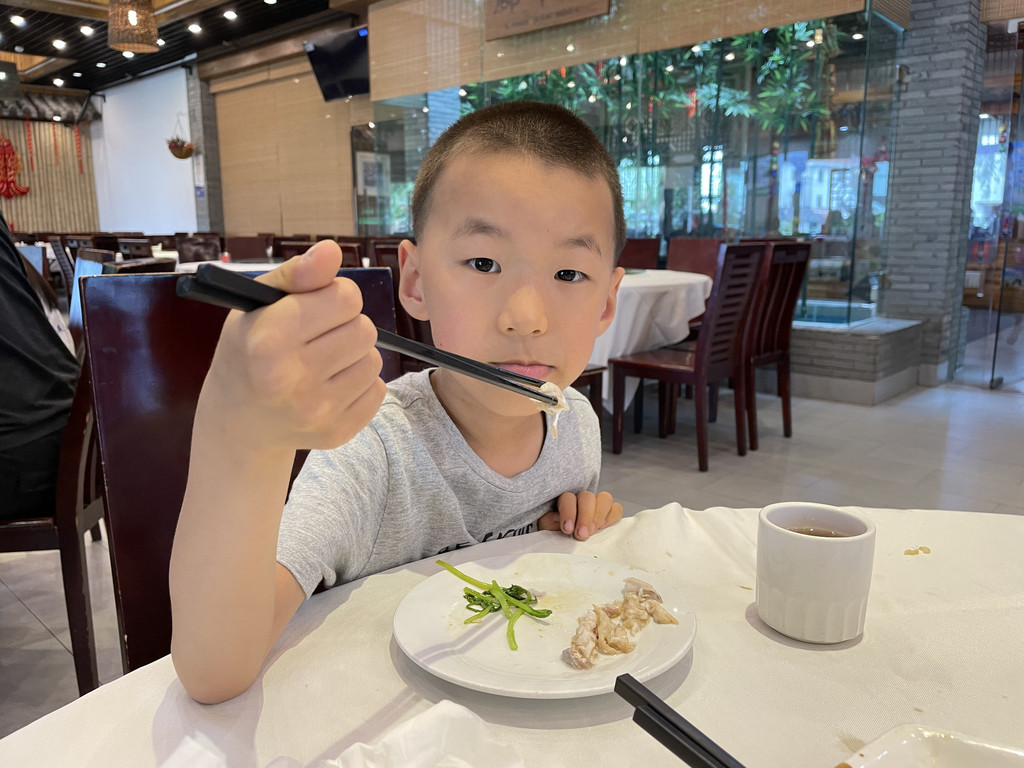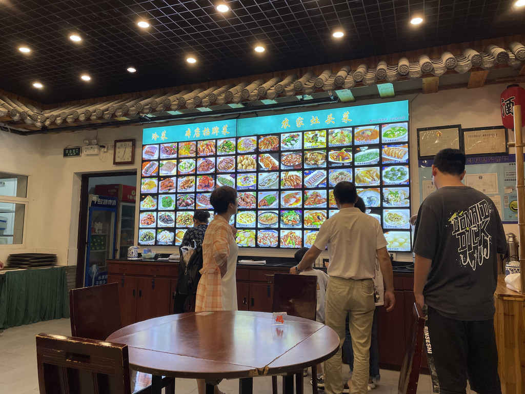 午饭是在附近的金山锦江中华村农家乐,蓝莓采摘园出来转个弯就到,饭庄门口停车方便,饭庄基本上是农家菜,四个菜一个汤,一个上海菜饭,大人小人吃的舒舒服服,特别时令蔬菜(茼蒿)一致好评。