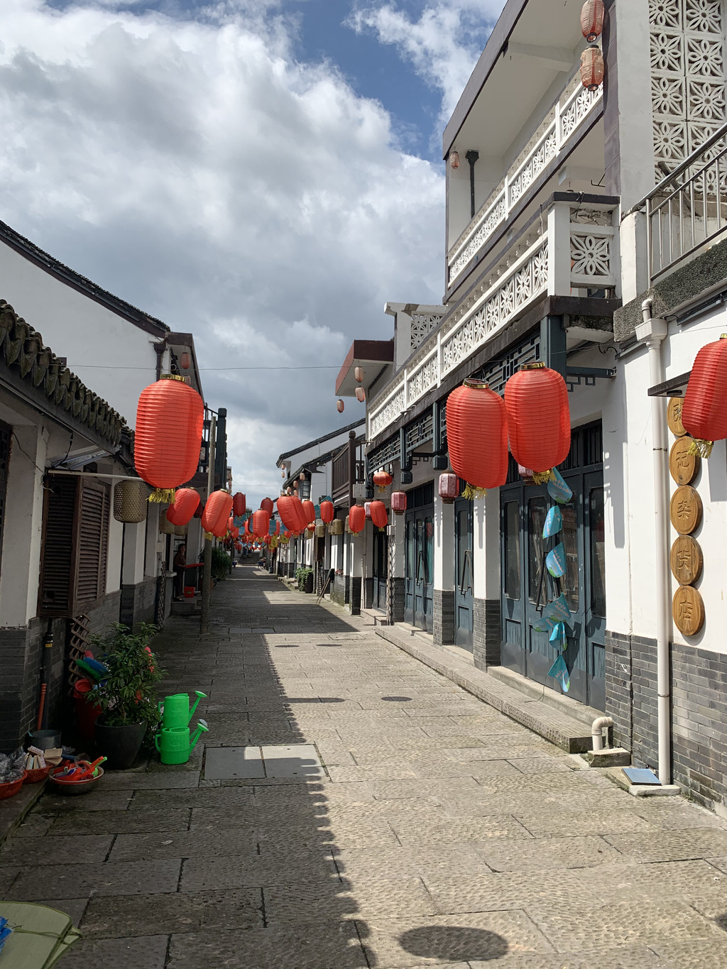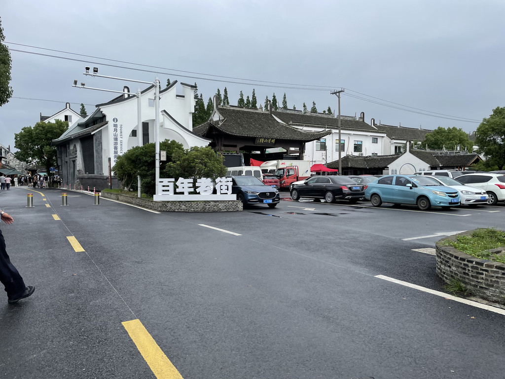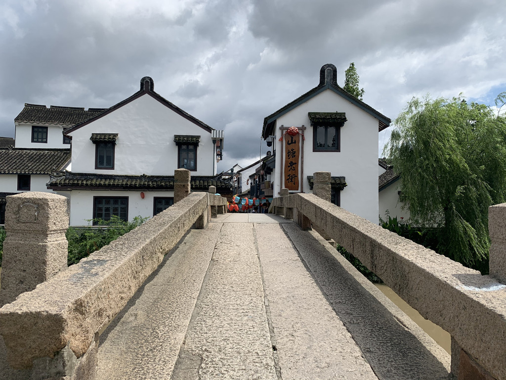 山塘老街实在是一个迷你的老街,街道南北向,一座山塘古桥将上海金山与浙江平湖连在了一起,山塘桥的北面是金山,南面就是浙江平湖了。北面街总长不到百米,南面最多也就二百米了。