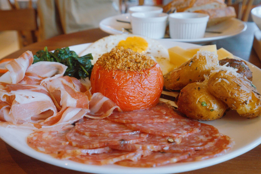 Mix C万象城新菜上市#早午餐拼盘158元#,我们选择大份的Big Plat,e份量好大。菜品主要有五部分组成:意式烟熏腊五花腿、意式传统萨拉米(现点现切的冷切肉或者鱼8款中选2种)、鸡蛋(2种煮法:我们选择单面煎)、3种规定的蔬菜等,再搭配孔泰奶酪4-6个月的奶酪(奶酪6款中选1种)。Luneurs把面包的麦香味发挥的淋漓尽致,在这里给大家分享一种最新的吃法,可以搭配三款不同调料,绝对是另外一种享受。鸡蛋在早午餐就是明星,不分国界,我就很爱溏心蛋那流畅的质感!摆盘很好看,很适合拍照。