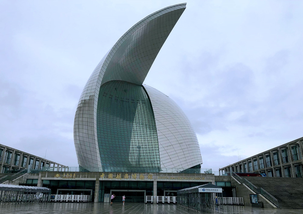 中国航海博物馆,离海昌公园大约10分钟车程,是一所科普性比较强的航海博物馆,太小的小朋友可能会有些许乏味。正门,磅礴大气,宛若两片船帆,背面,能看到整个场馆的地理位置,有种“直挂云帆济沧海”的味道。