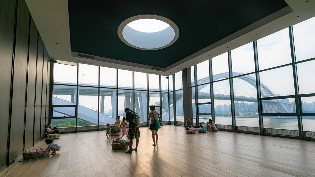 位于楼顶的悬崖剧场,是一个观景的绝佳位置。这里的身后就是黄浦江,站在玻璃观景台远眺,还能看到卢浦大桥,景色风景堪称一流。在这儿每天都会上演“花之舞曲”和“悬崖音乐会”,都是十分值得观看的表演。