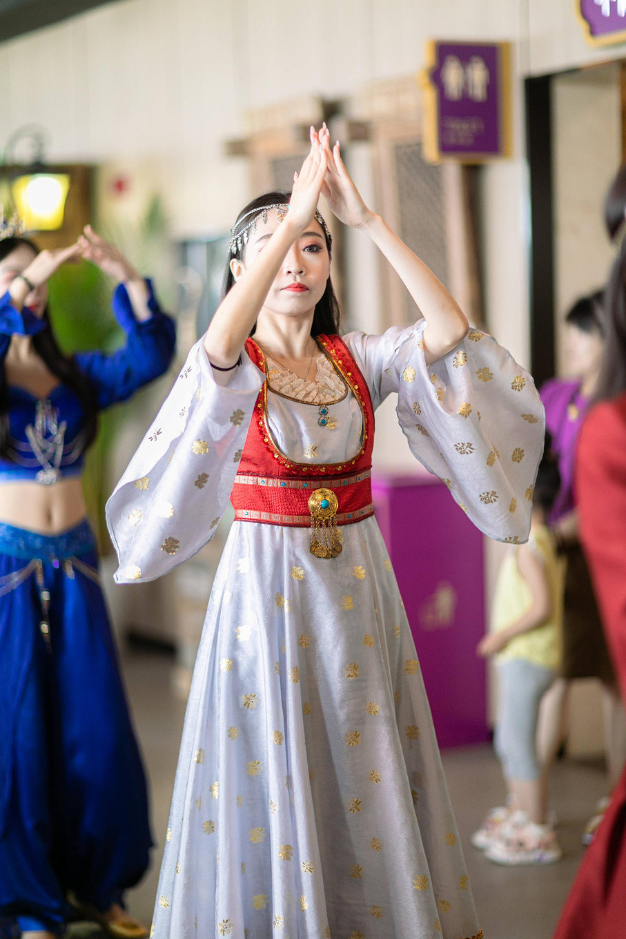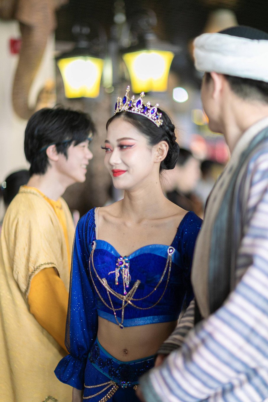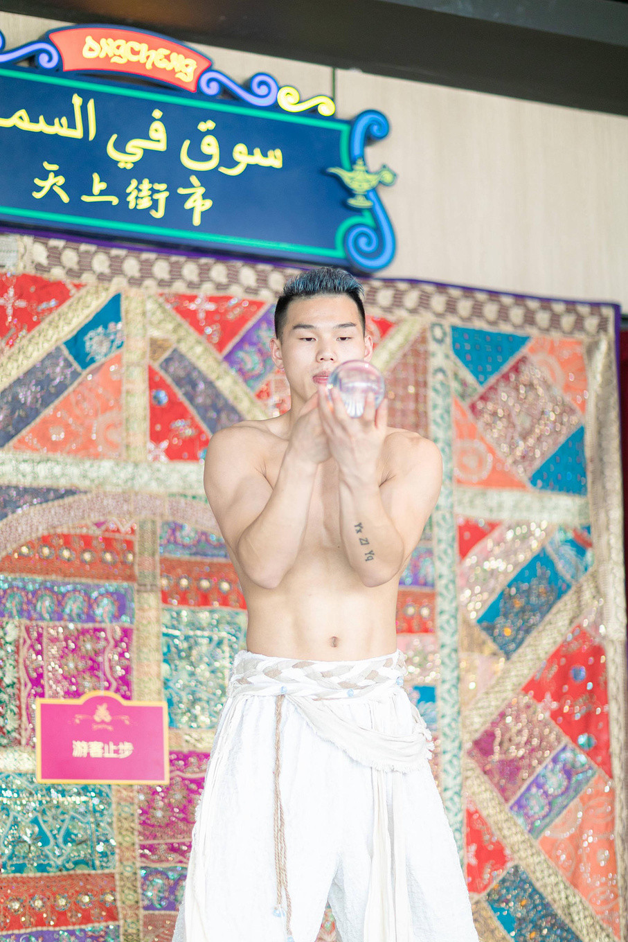 每天下午都会有一场神灯快闪,也在天上集市。演员们穿着阿拉伯的特色服饰从你的身边走过,来自阿拉伯的公主和王子就在你身边,演出的同时还会和游客们进行互动,可以说是一次非常棒的沉浸式体验。