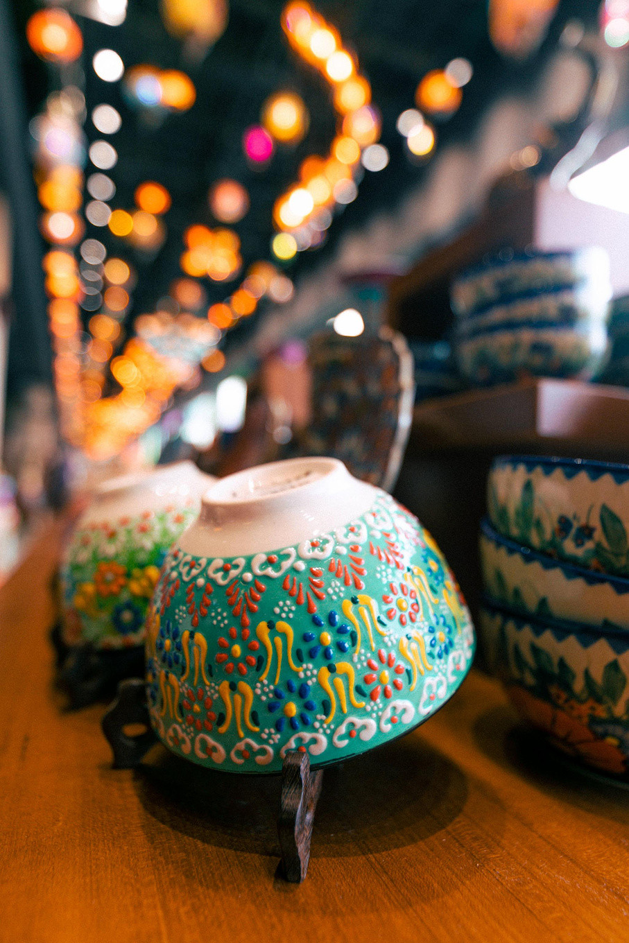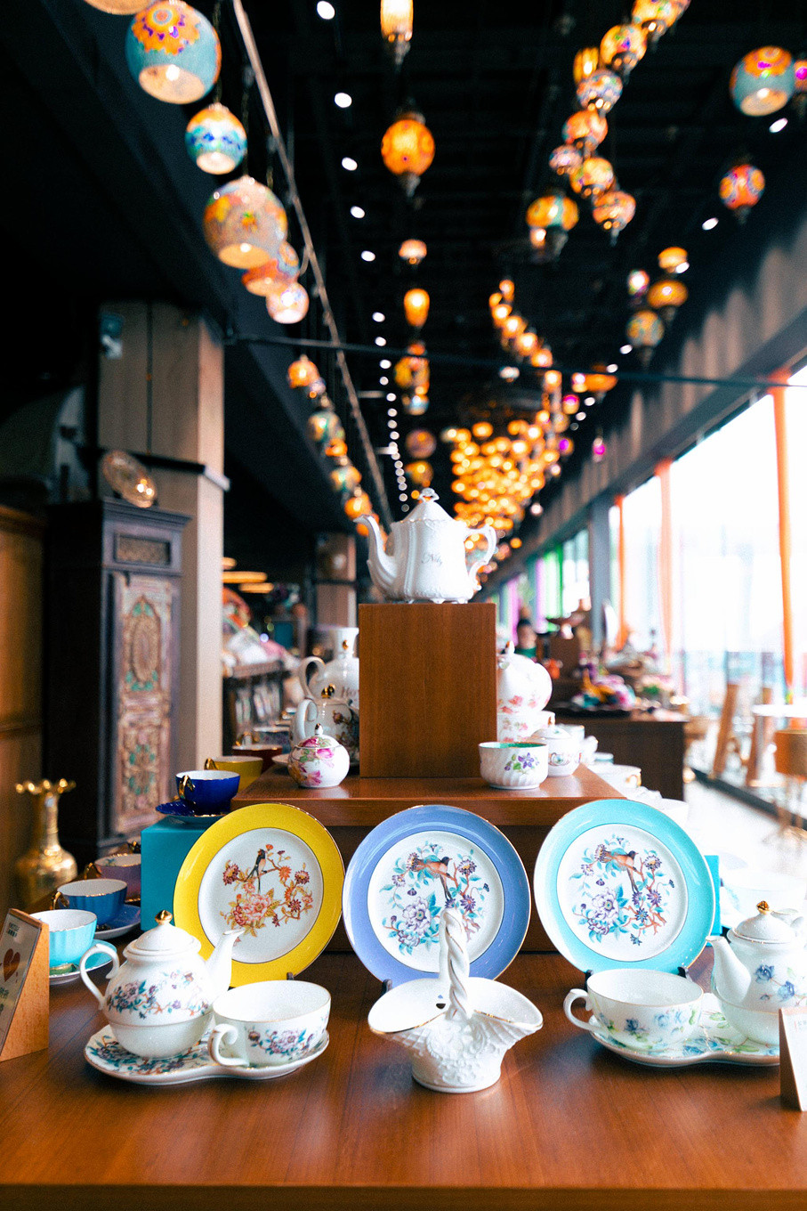 天上集市可以说是我在宋城最喜欢的地方了。这里是一条充满异域风情的市集,摆放着从全球淘来的各种工艺品,与其说这里是一个店铺,我倒愿称之为艺术长廊,就仿佛一秒走入了西域一般。