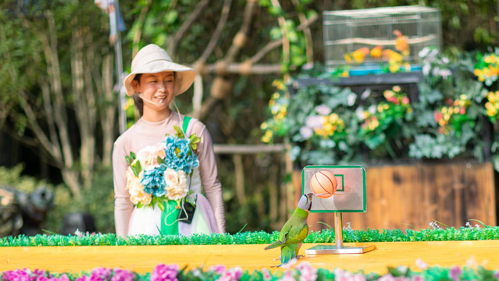 这是一个户外的表演项目,地点就在一楼室外的鸟秀剧场。在这儿不仅可以看到各种鹦鹉神奇的表演,而且还能科普鸟类知识,非常适合亲子观赏。