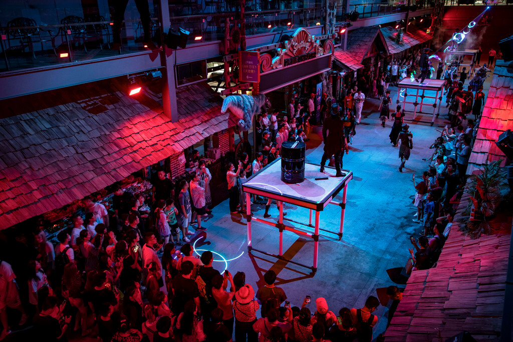 灯光时而明亮时而昏暗,现场DJ带领所有的观众一起嗨到爆,上海宋城的快闪比以往那些传统搞笑的形式更有趣,这里充满了时尚与新潮,也多了一份神秘色彩,最后在音浪中和演员们一起嗨起来吧~